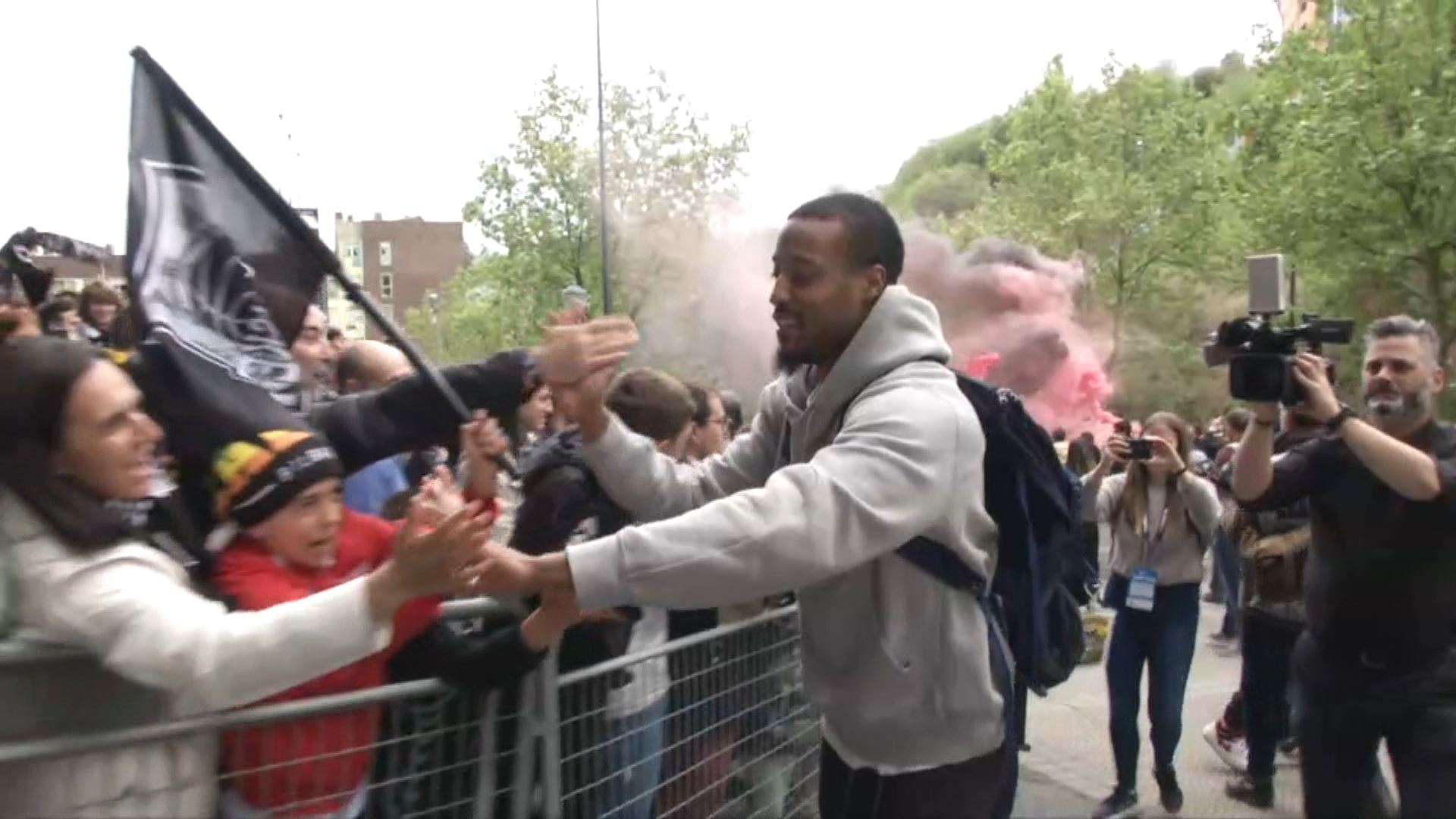 La convocatoria de Hirukoa Taldea ha llevado a la entrada del Bilbao Arena a cientos de aficionadas y aficionados del Surne Bilbao Basket, que han acompañado con sus aplausos y su colorido a los jugadores del conjunto vizcaíno.