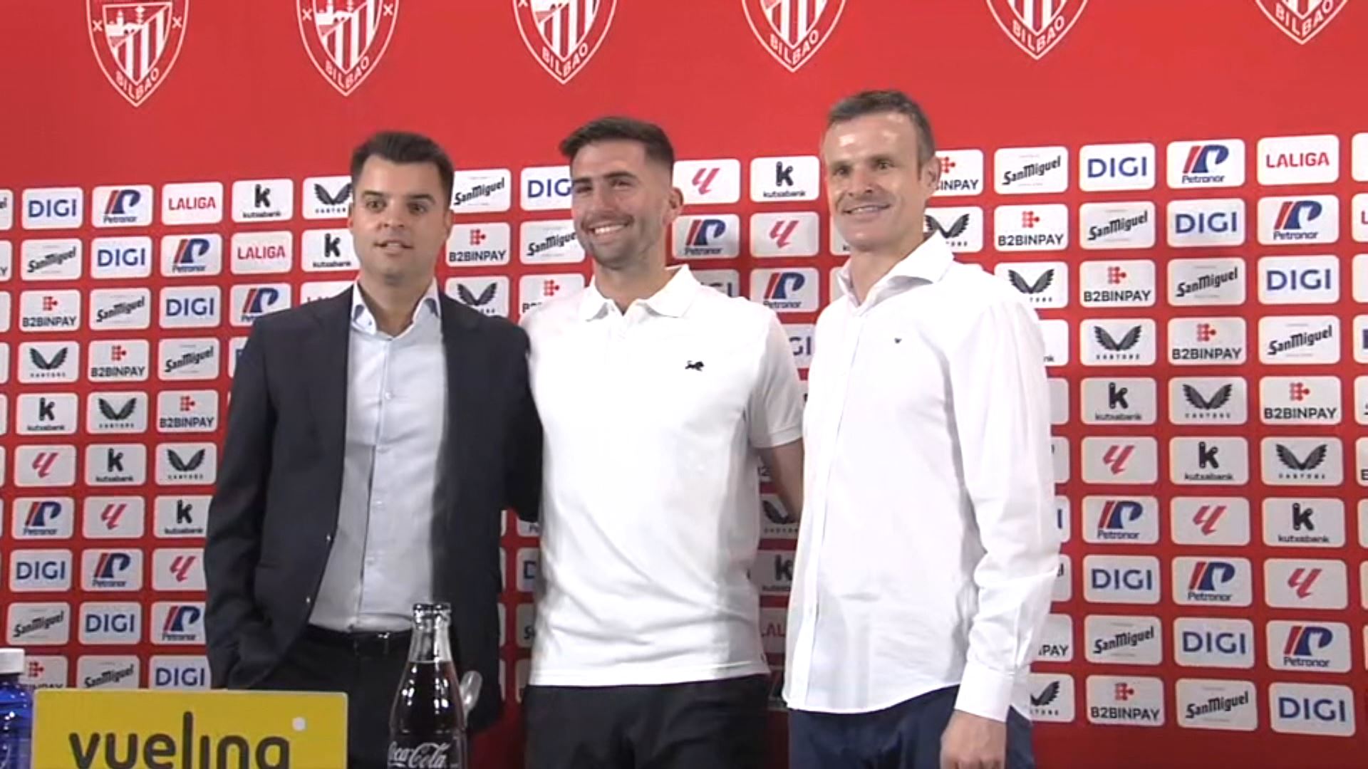 Jesús Areso ha sido presentado como jugador del Athletic este miércoles junto al presidente, Jon Uriarte, y el director deportivo del club, Mikel González.