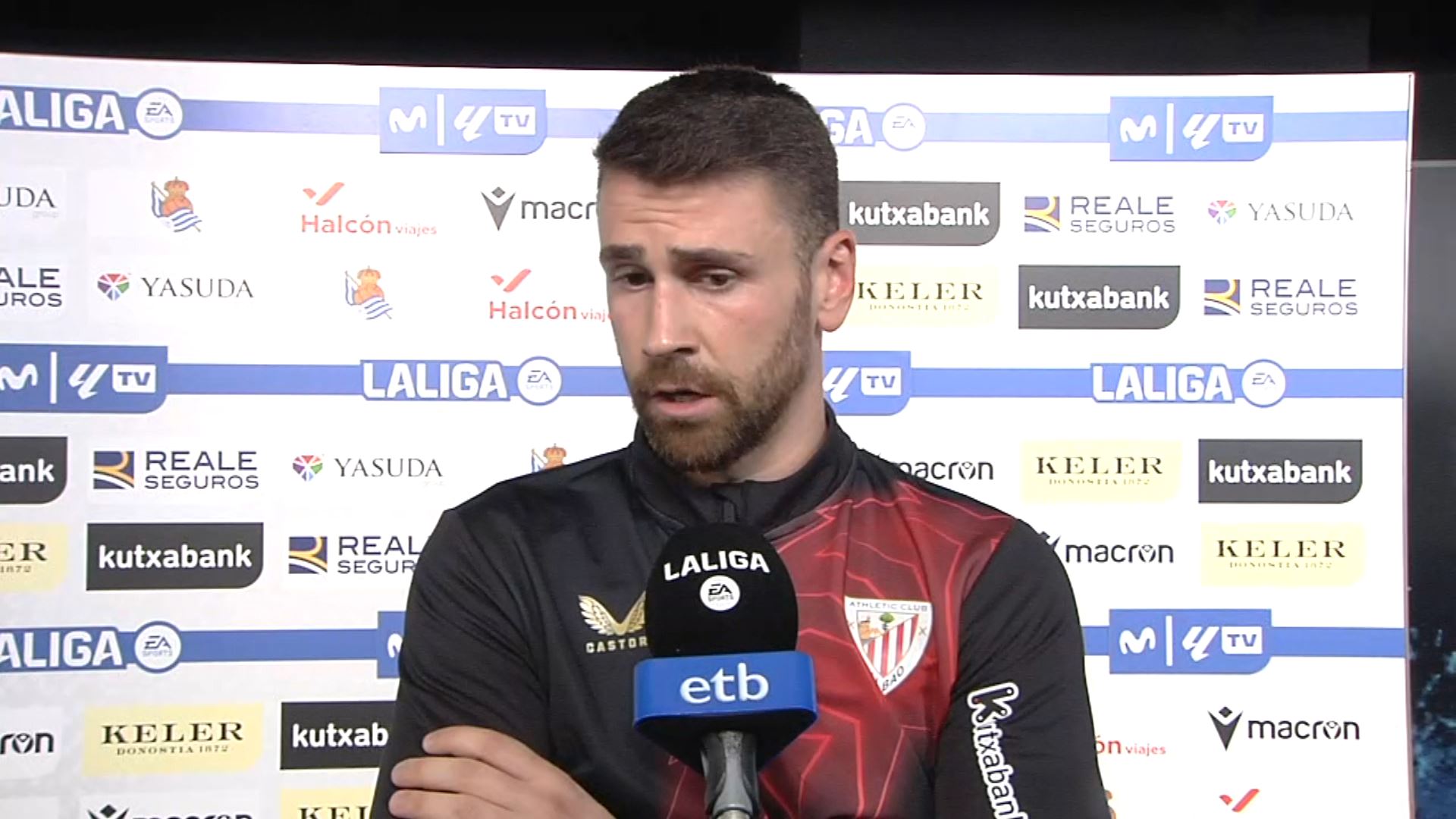 El portero del Athletic Unai Simón ha hablado sobre el empate logrado en el derbi contra la Real Sociedad en la 34ª jornada de LaLiga EA Sports disputado en el Reale Arena.