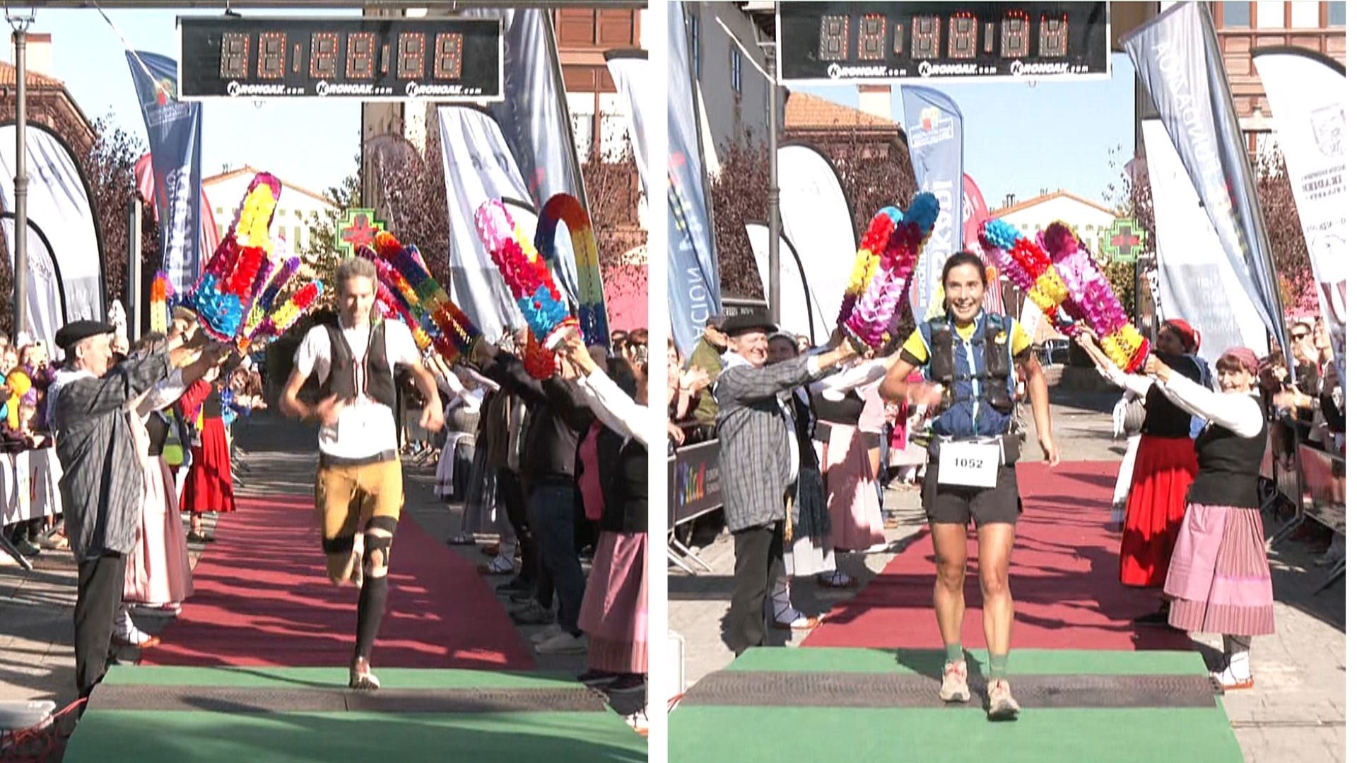Julen Martínez de Estibariz y Ainara Arkarazo dominaron este sábado en la Hiru Haundiak, que recorre las tres cimas vascas, Aizkorri, Anboto y Gorbea en una prueba de 101 kilómetros.