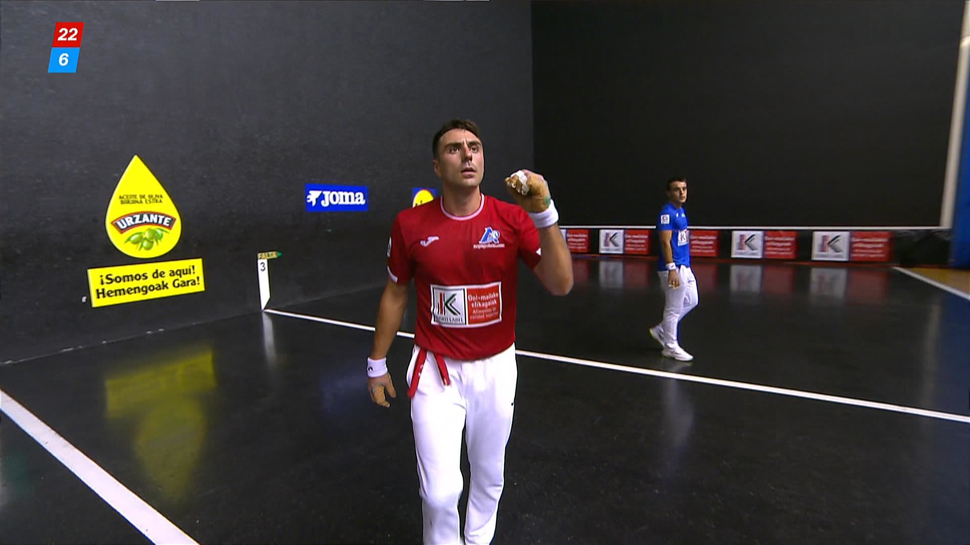 Peio Etxeberria ha ganado 22-6 a Iker Larrazabal en la liguilla de cuartos de final del Campeonato del Cuatro y Medio. El pelotari de Aspe, que tenía un partido a muerte, ha hecho los deberes. Larrazabal, por su parte, lo tendrá muy difícil para clasificarse a semifinales.