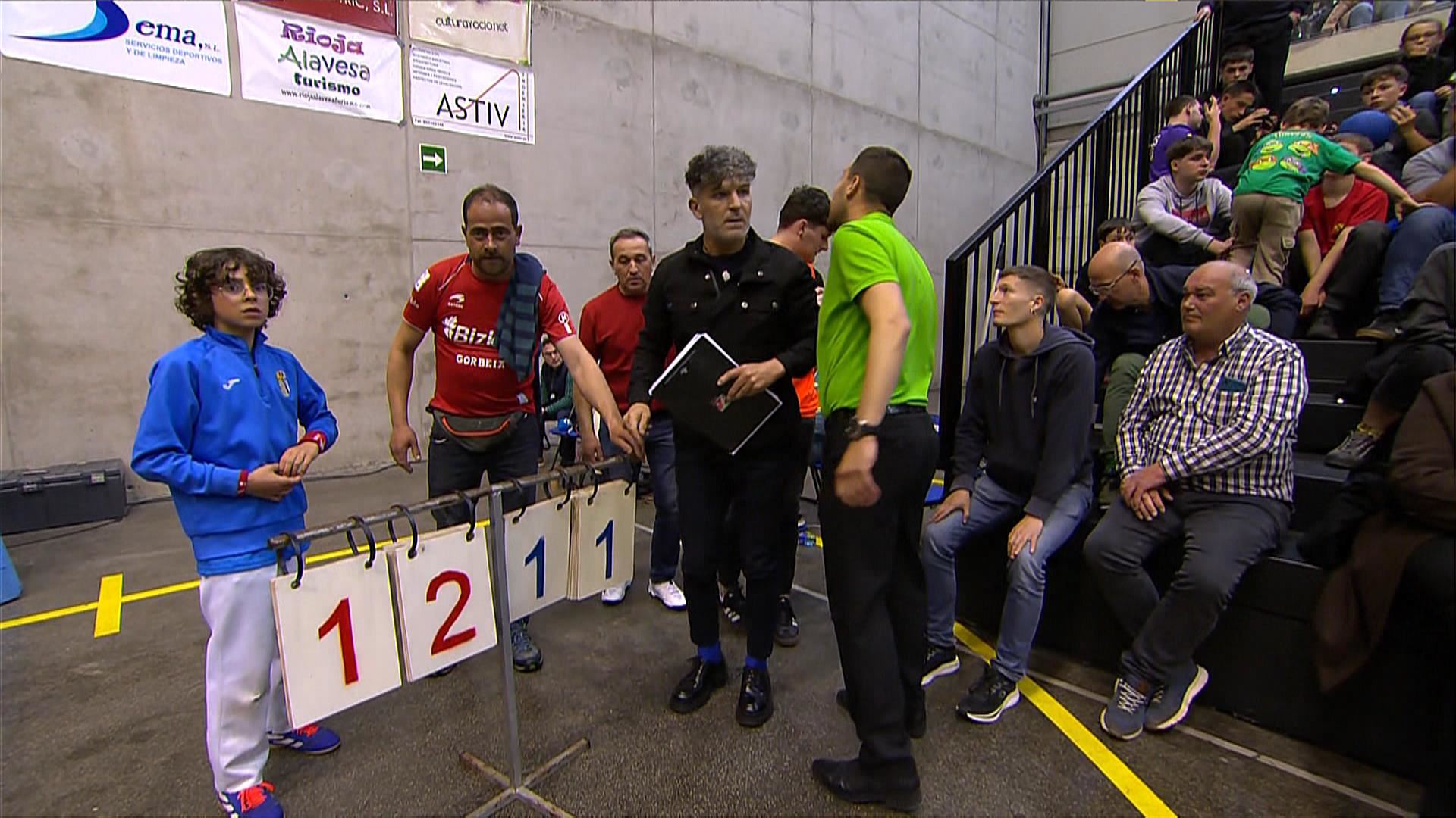 El marcador eléctronico del frontón municipal de Labastida ha sufrido una avería, lo que ha obligado a suspender el partido entre Darío Gómez e Iker Larrazabal hasta que ha sido reemplazado por otro manual.
