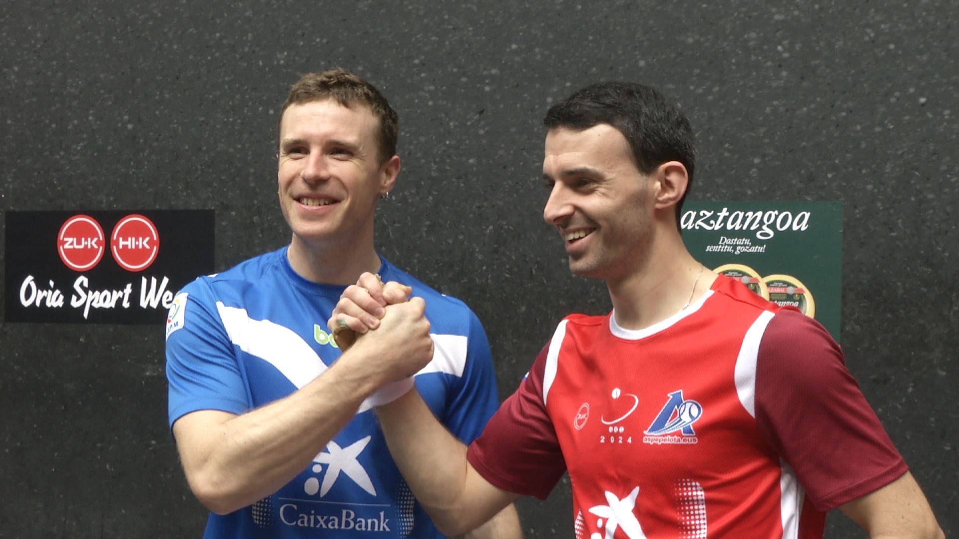 Iñaki Artol y Jokin Altuna disputan este domingo la gran final del Campeonato Manomanista en el frontón Bizkaia. Ambos han elegido el material este miércoles, además de explicar cómo se sienten.