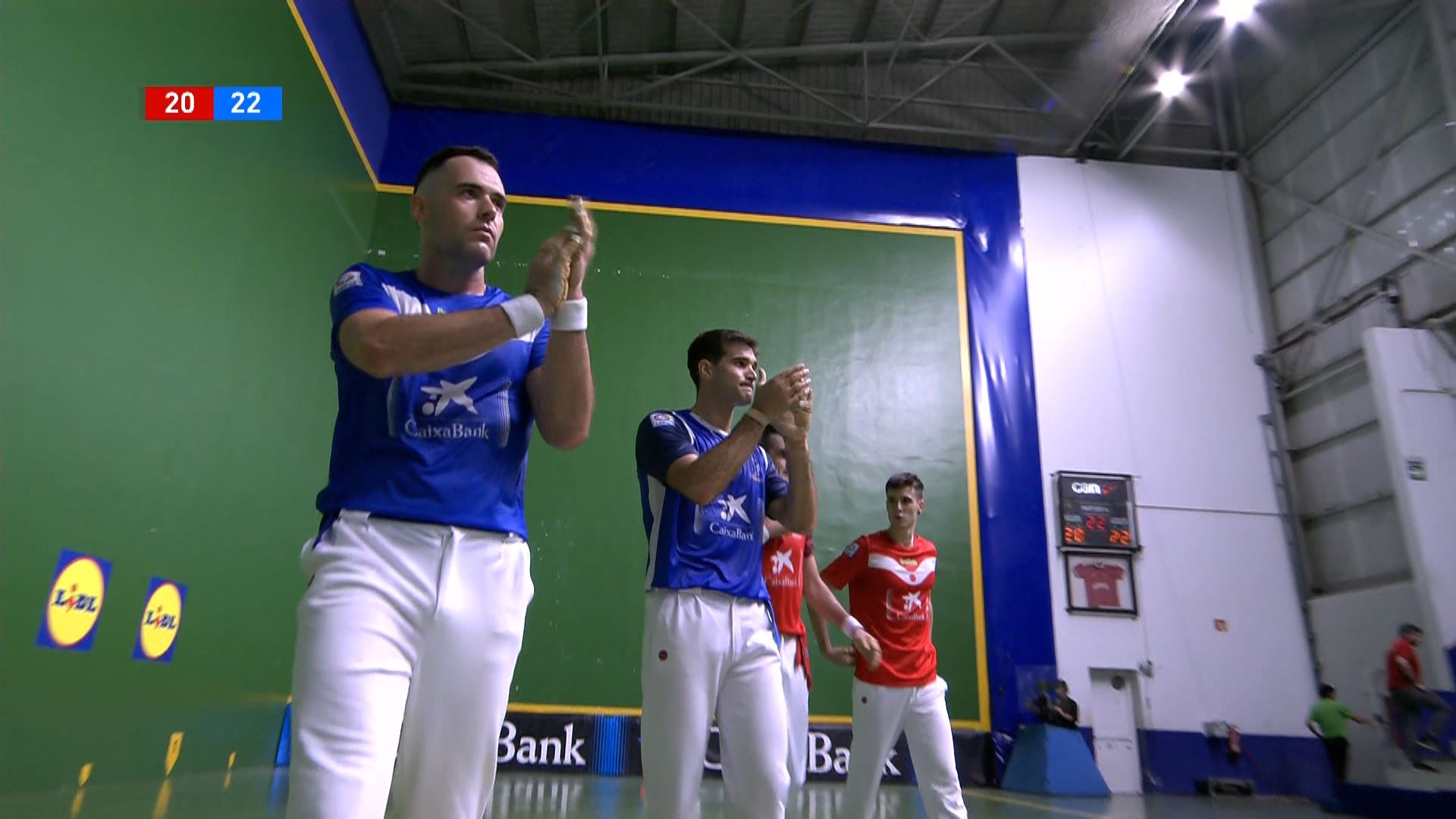 Jaka y Zabaleta han ganado 20-22 a Ezkurdia e Iztueta en la 6ª jornada del Masters CaixaBank. El partido ha sido muy disputado e intenso, y al final se ha impuesto la pareja azul.