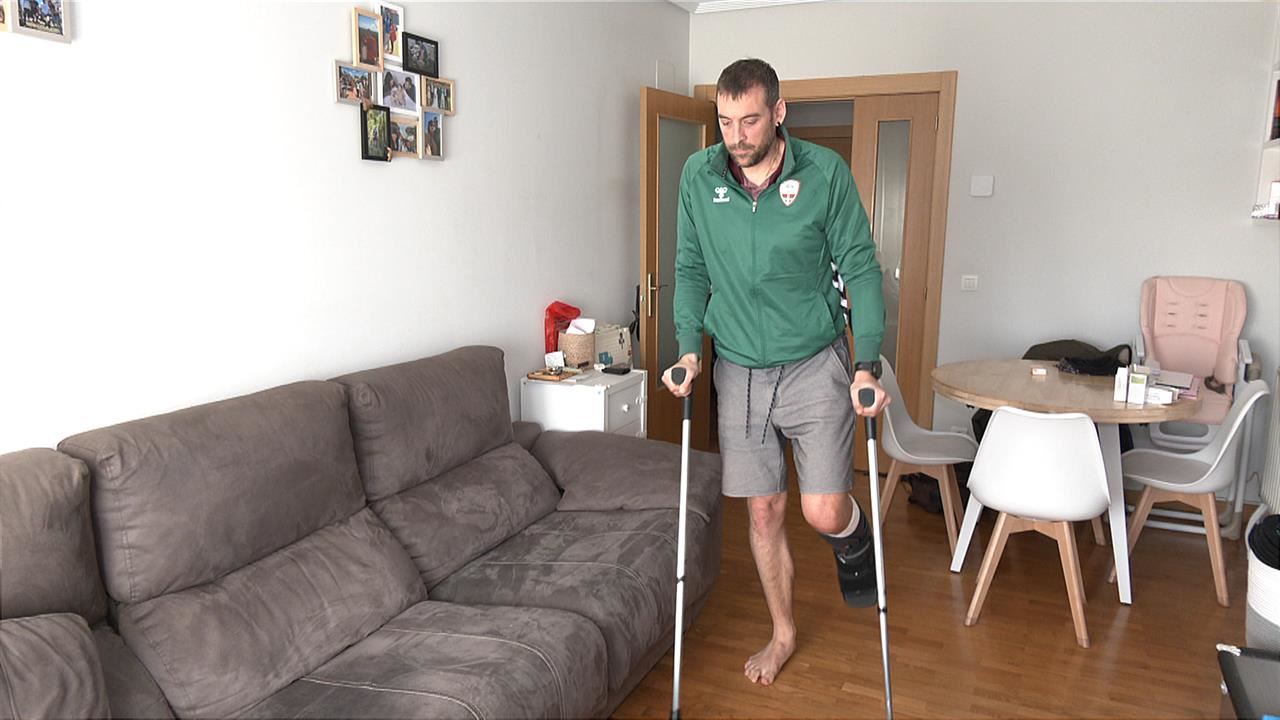 El zaguero bilbaíno sufrió la grave lesión el pasado fin de semana. Fue operado ayer, miércoles, y ya se encuentra en casa.