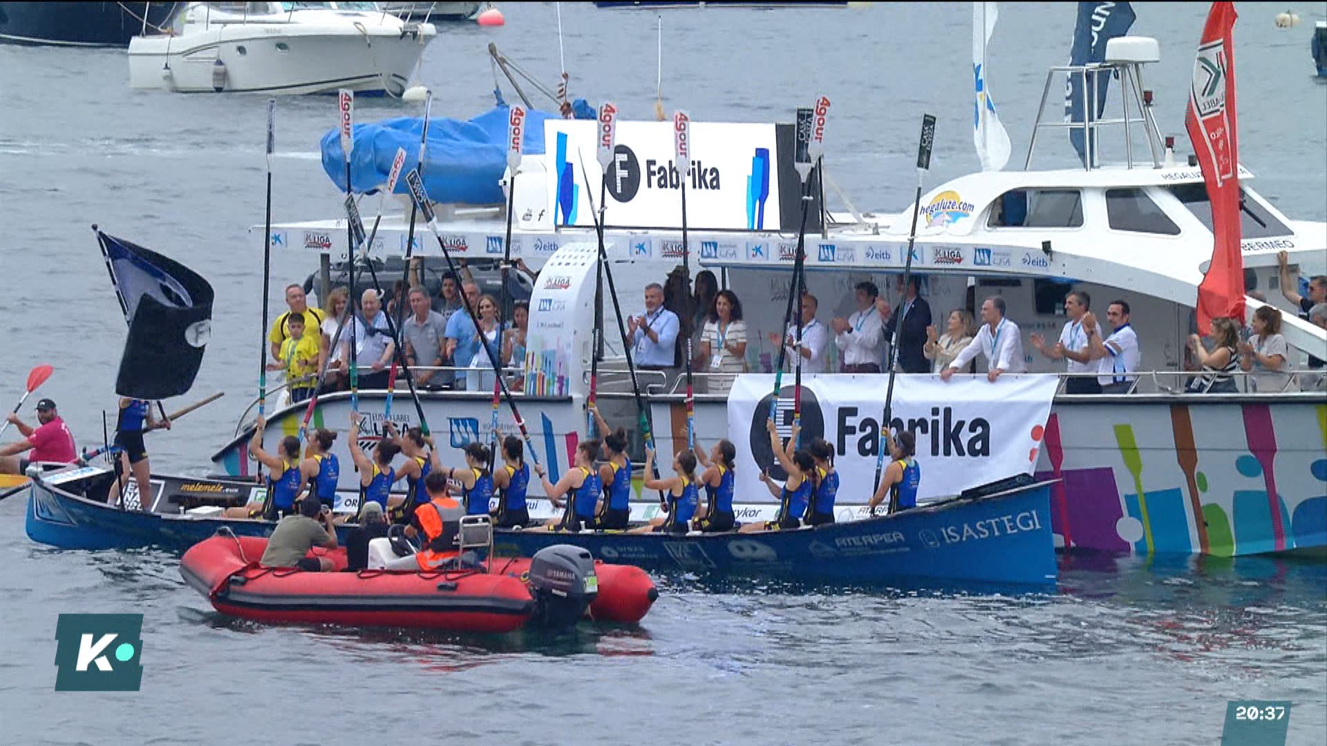 En la Bandera Fábrica disputada en aguas donostiarras, tercera regata de la Liga Euskotren, ha dominado la trainera entrenada por Ramón Erostarbe, que ha entrado en la disputa directa por la Liga.