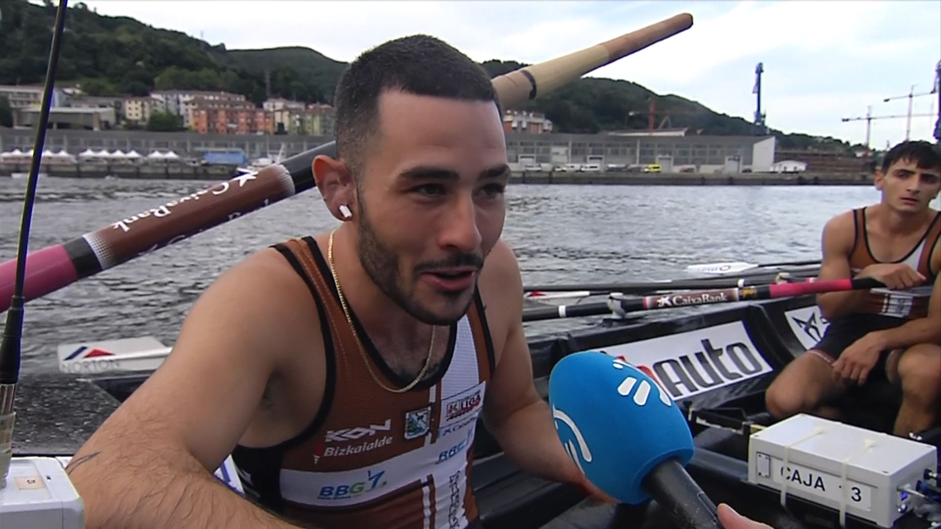 El patrón de Zierbena, Aitor Lazkano, se ha mostrado exultante después de conquistar la primera bandera de la Liga Eusko Label para el club vizcaíno en aguas de Pasai Donibane.