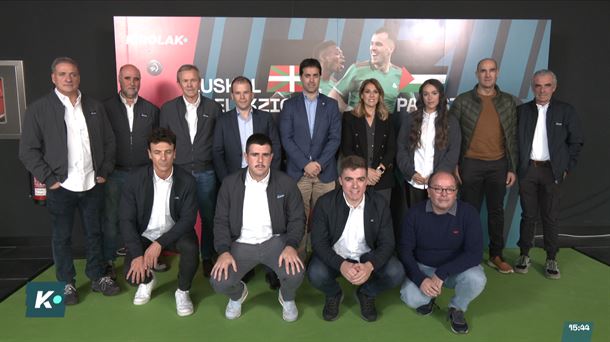 Este jueves 6 de noviembre se ha presentado en la sede de EITB en Bilbao la cobertura que EITB Kirolak realizará del partido solidario entre Euskal Selekzioa y Palestina. El acto ha contado con la presencia de Iker Goñi, presidente de la Federación Vasca de Fútbol, el director de EITB Kirolak Joseba Urkiola y la subdirectora de EITB Kirolak Amane Ibañez. También ha participado en la presentación una amplia representación del equipo que retransmitirá el encuentro: Naxari Altuna, Juanan Larrañaga, Iñigo Barrena, Joxe Mari Apaolaza, Nerea Zusberro, Txema Añibarro, Asier Kareaga y Gontzal Mendibe.