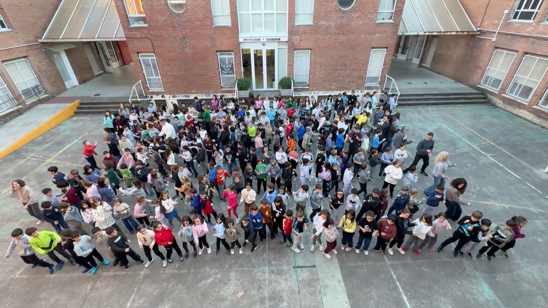 Alumnos y profesores de Aita Larramendi Ikastola de Andoain se han juntado para apoyar el reto solidario de este año de EITB Maratoia. Ellos también apoyan la causa por la prevención y la investigación, por un envejecimiento activo y saludable.