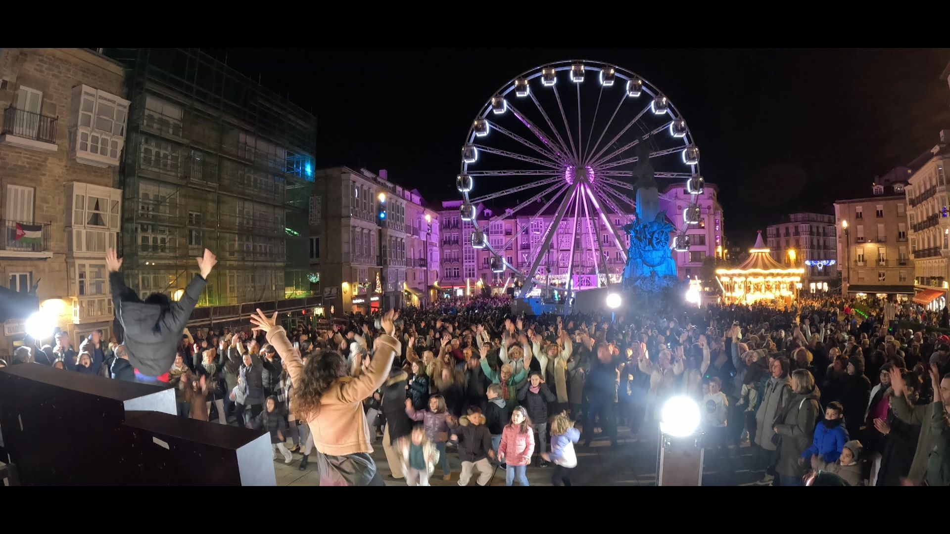 El sábado por la tarde se celebró una exitosa quedada en la plaza de la Virgen Blanca de Vitoria-Gasteiz. Todas las personas reunidas bailaron con entusiasmo la canción "Euskal Rock n´Roll" de Niko Etxart para impulsar el reto solidario de este año del EITB Maratoia.