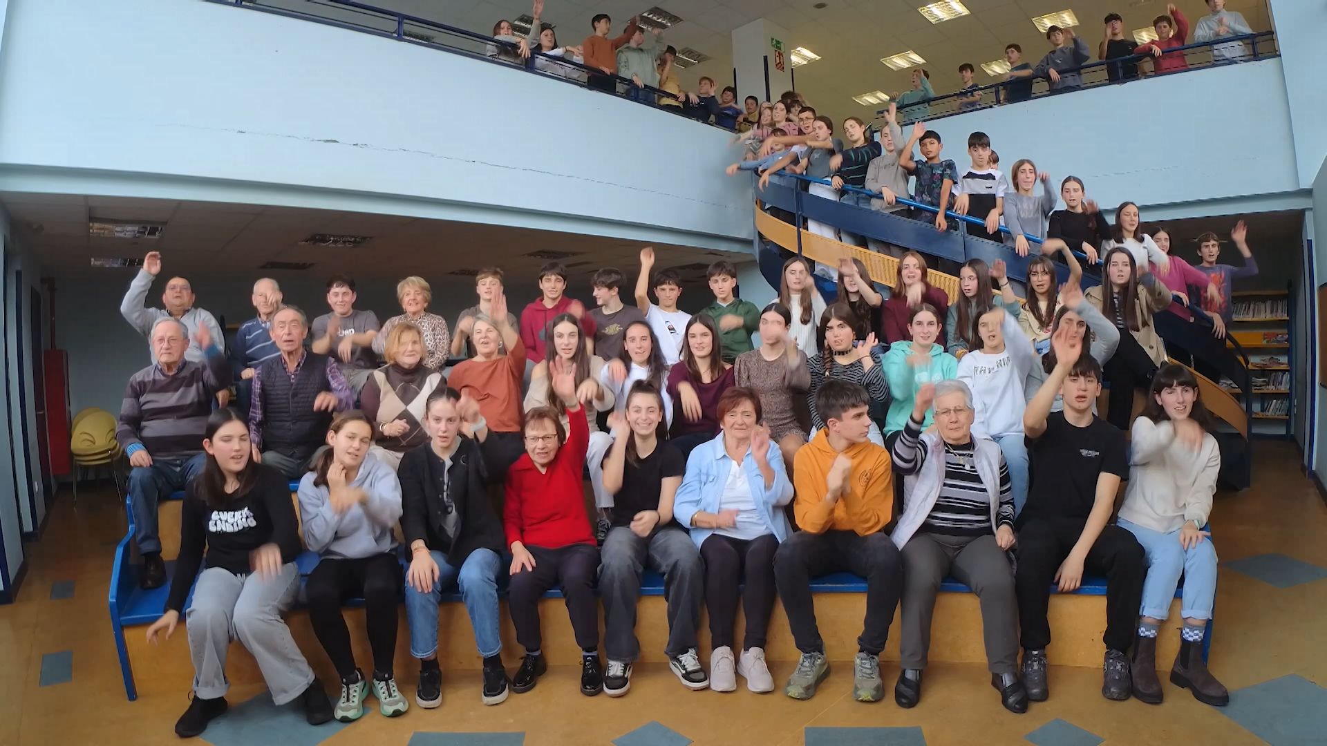 La asociación de jubilados y pensionistas de Aretxabaleta, junto con los alumnos y alumnas de Arizmendi Ikastola, se ha animado a cantar y bailar el "Euskal Rock n'Roll".