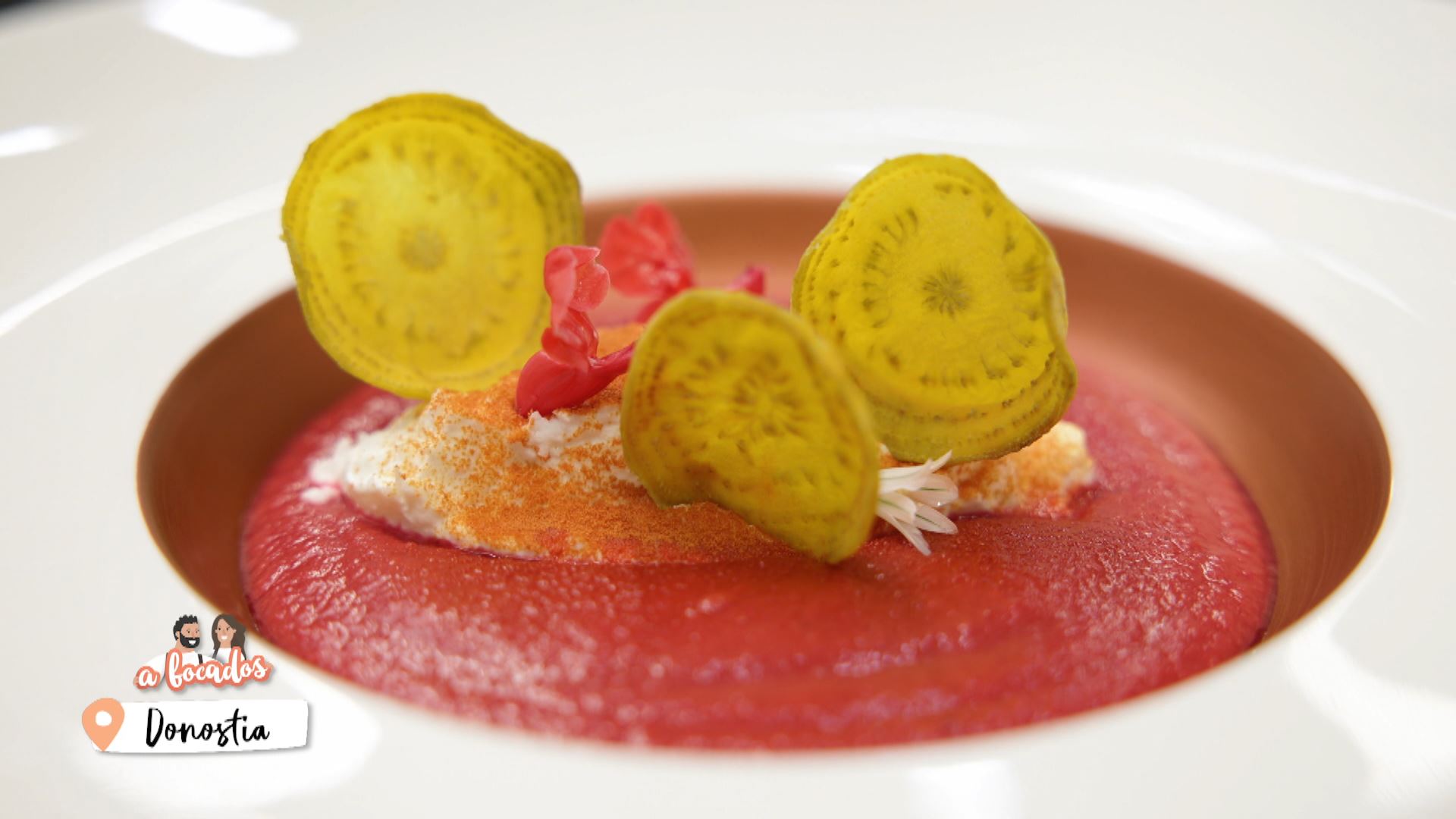 Visitamos el restaurante Zelai Txiki en Donostia para probar un plato vegetariano y fresco, perfecto para el verano. Un salmorejo de remolacha con queso fresco de Idiazabal y crujientes de remolacha.