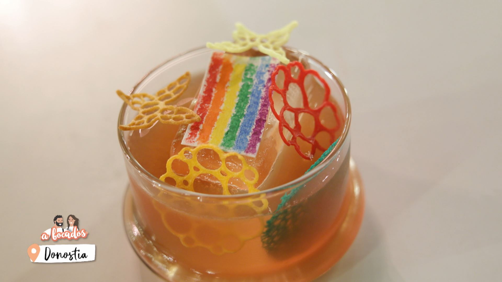 Nos vamos hasta Donostia para que Patxi Troitiño nos prepare el cóctel Harro, perfecto para la semana del orgullo. Con zumo de lima, naranja, arándanos, sirope de mandarina, ginebra sin alcohol y con la bandera en papel de azúcar.