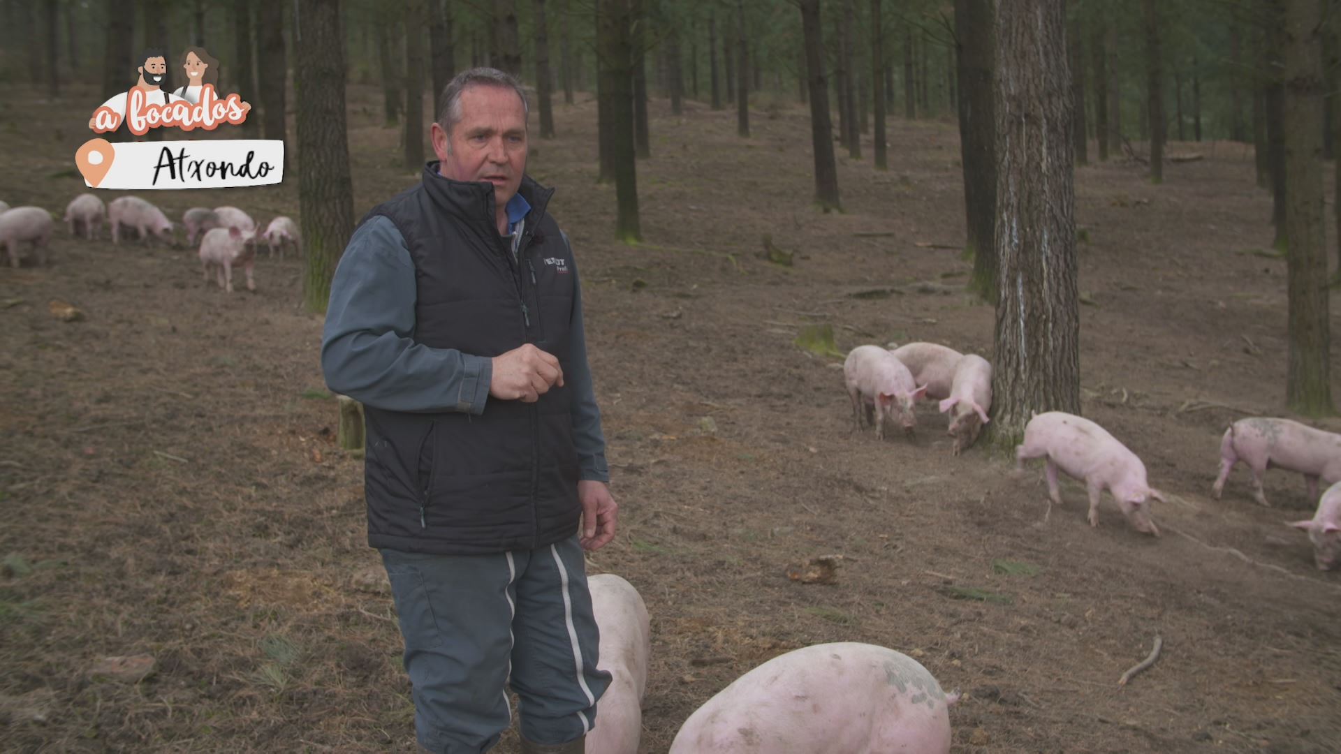 Hoy nos hemos ido hasta Atxondo a visitar a Karlos Ibarrondo. Allí nos ha explicado cómo cría a sus cerdos Basatxerri: qué comen, dónde duermen y cómo es su rutina.