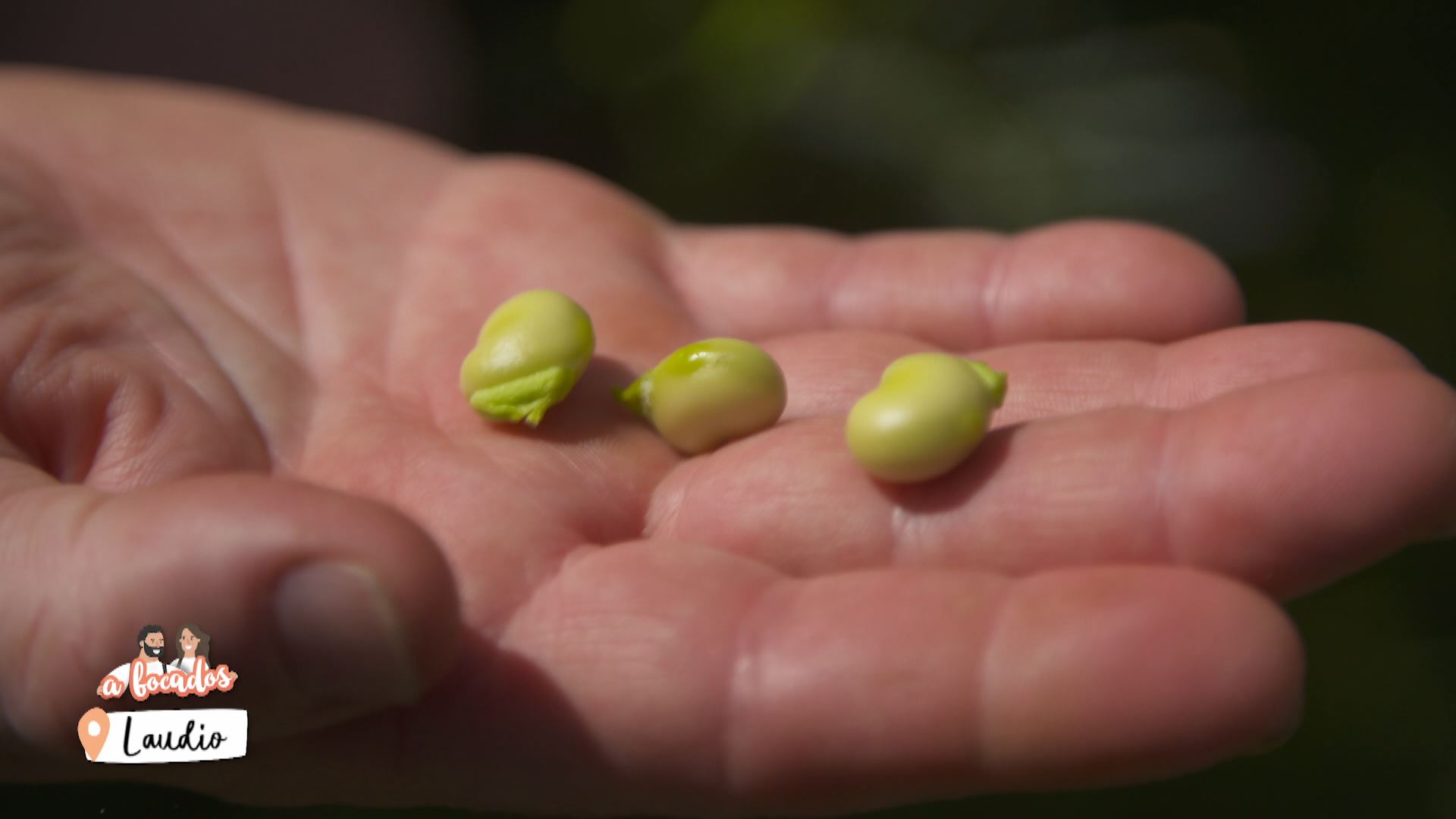 Josemi Atxa nos enseña el manjar que cosecha en el Caserío Kasille, las habas. Algunos las prefieren maduras con ese sabor fuerte, pero las blandas con su sabor dulce son un manjar que pueden acompañar muchos platos.