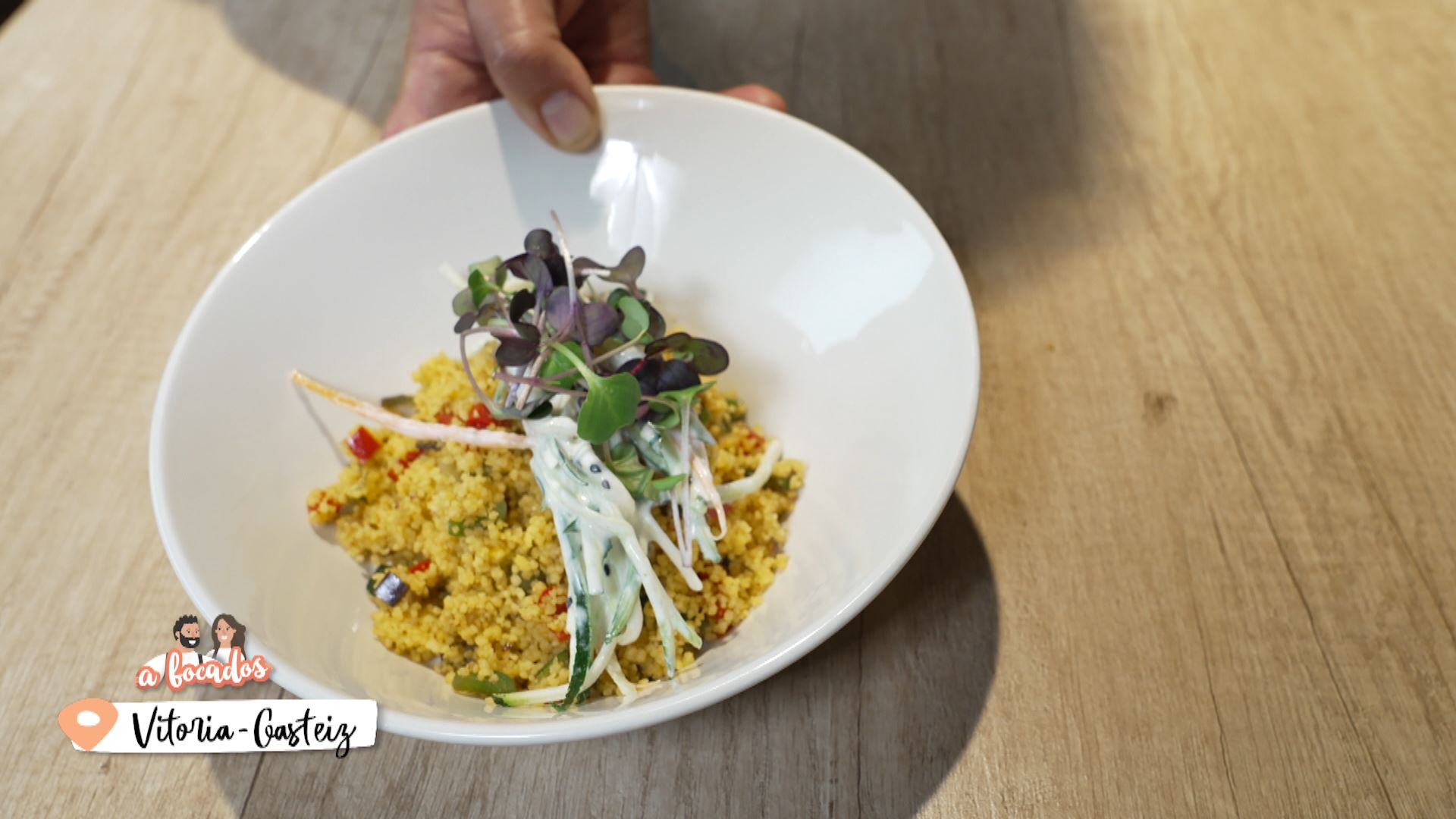 Visitamos el restaurante Waska en pleno centro de Vitoria-Gasteiz para probar un plato con toques árabes. Un tabulé con verduras y ras el hanut acompañado de verduras aliñadas con yogur griego y sésamo.