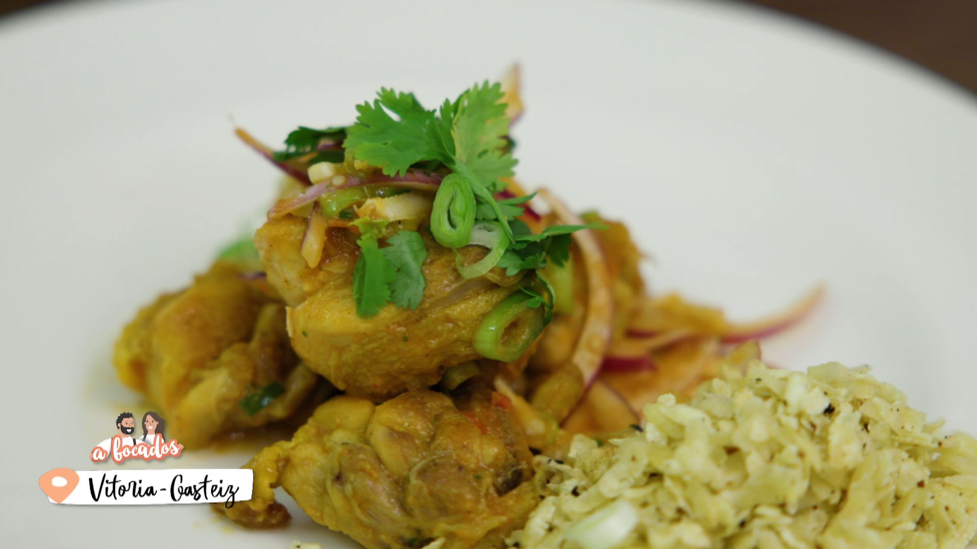 El bar Triskari de Vitoria-Gasteiz nos trae un trocito de Nepal a Euskal Herria. Nos preparan un plato típico de la región de Katmandú, el pollo chhoyla que se elabora con muslos de pollo con muchas especias y acompañado de copos de arroz