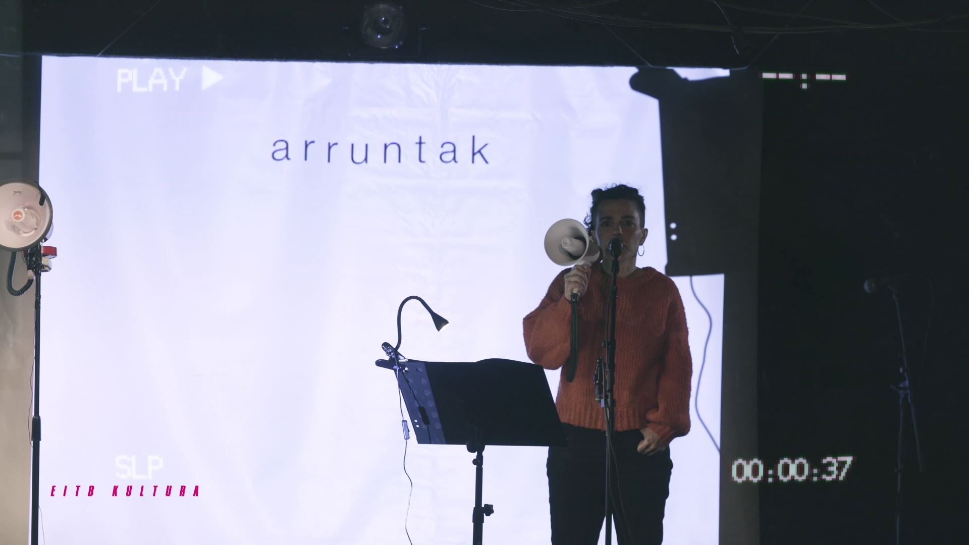 La bertsolari Maialen Lujanbio juega con el lenguaje fusionando las palabras escritas con las cantadas para hablar de la actualidad y de la época. Acompañada de un megáfono, el concepto que surgió en 2018, está ahora en su sexta variante.