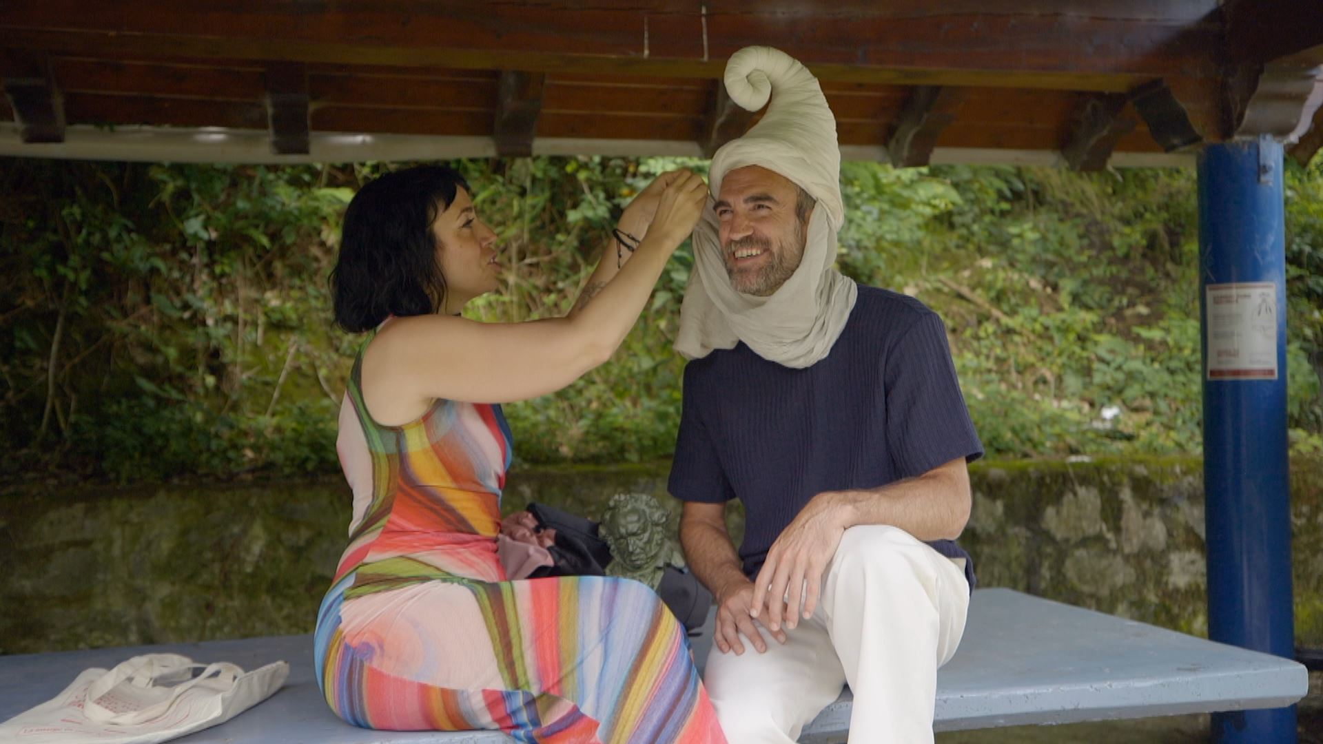 La figurista y diseñadora de vestuario Nerea Torrijos ganó el Goya al mejor diseño de vestuario por su trabajo en 'Akelarre'. Uno de los accesorios de la película fueron los' burukoak' o tocados fálicos, que marcaban el estatus social de las mujeres. Jon Plazaola se ha probado uno de ellos.