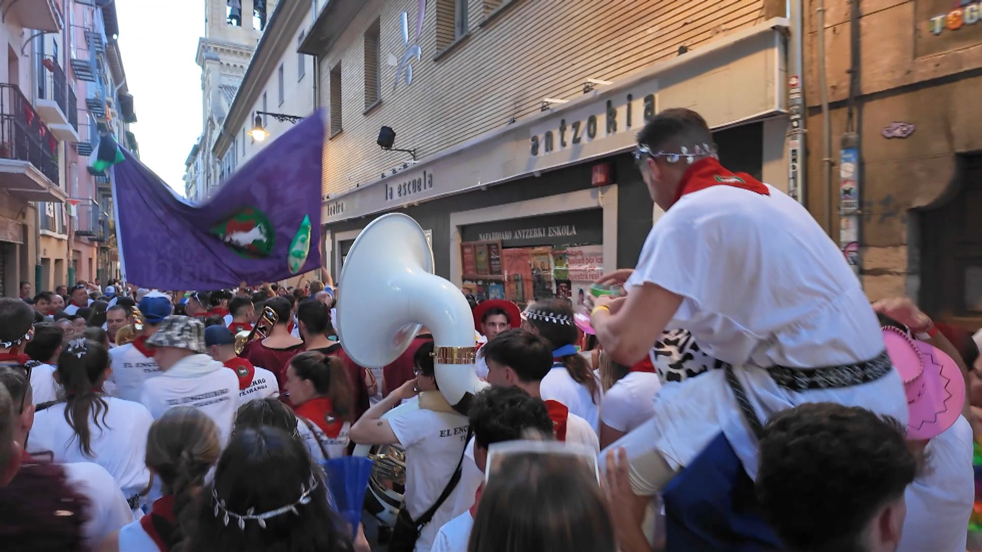 Tras la corrida de toros, las peñas de Pamplona realizan un desfile por las calles de la capital navarra. Desde las 21:30 hasta las 23:30, la diversión y el buen ambiente está garantizado. No pueden faltar las charangas, meriendas y las bebidas, el combustible necesario para seguir con la fiesta.