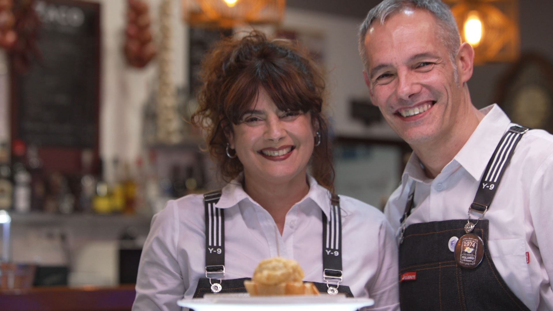 Javier Trueba y Rocío Ruiz, propietarios del bar Lagun Etxea de Santurtzi, nos muestran su clásico huevo relleno, el pintxo que presentan a concurso en "Pintxo Pote". Se trata de un huevo cocido relleno con su yema, mayonesa casera y tacos de jamón, y rebozado con harina y huevo.