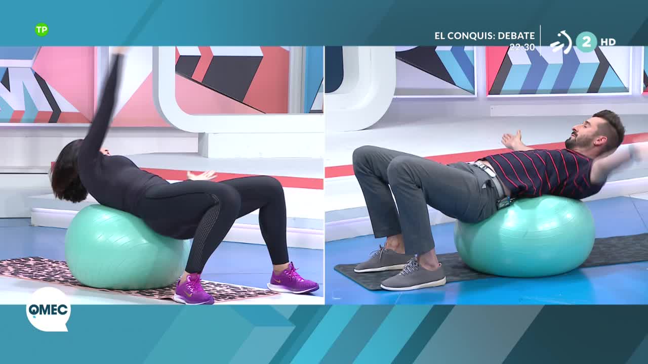 La preparadora física Nerea Salinas muestra cómo hacer ejercicio con una “fitball”. Explica que es un accesorio ideal para hacer ejercicio en casa y para sentarnos a hacer otras cosas.