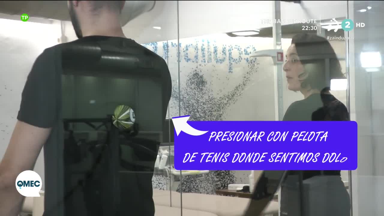 La preparadora física Nerea Salinas muestra unos masajes que podemos darnos con una pelota de tenis si nos duele algún músculo del brazo o la espalda.