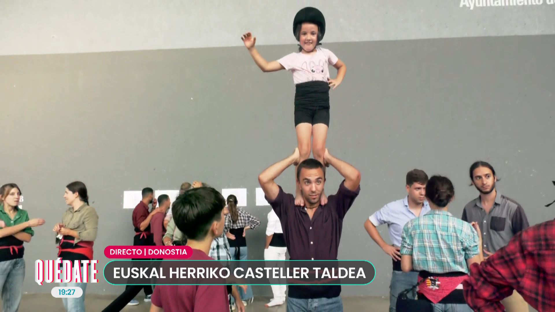 María Jesús Torres, directora de Donostiako Festak, nos habla sobre el espectáculo que reunirá a Euskal Herriko casteller taldea, los Castellers de Lleida y la Comparsa de Gigantes de Donostia este viernes, 15 de agosto. Vemos cómo se prepara la colla de Euskal Herria.