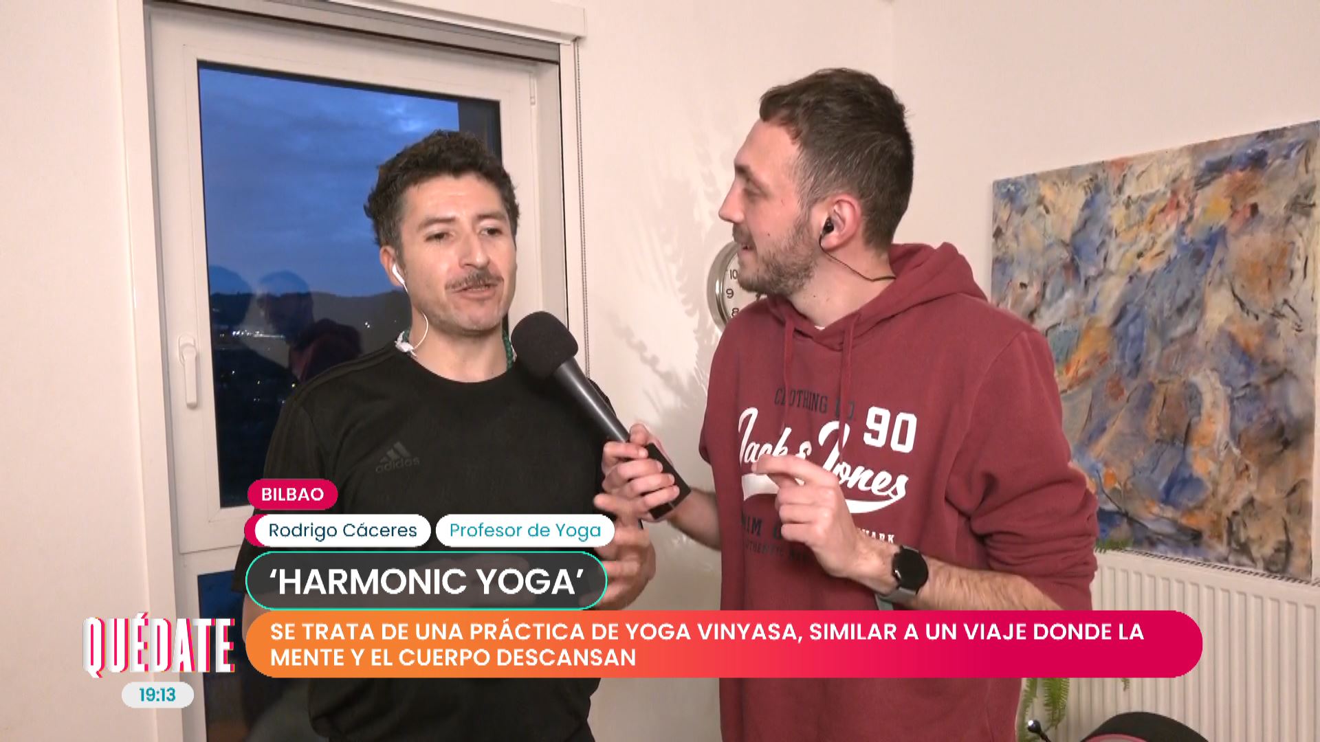Rodrigo Cáceres es instructor de Harmonic Yoga. Esta modalidad de Yoga tiene como objetivo que la mente y le cuerpo se relajen hasta el punto de quedarse en blanco. Todo esto está acompañado de sonidos.