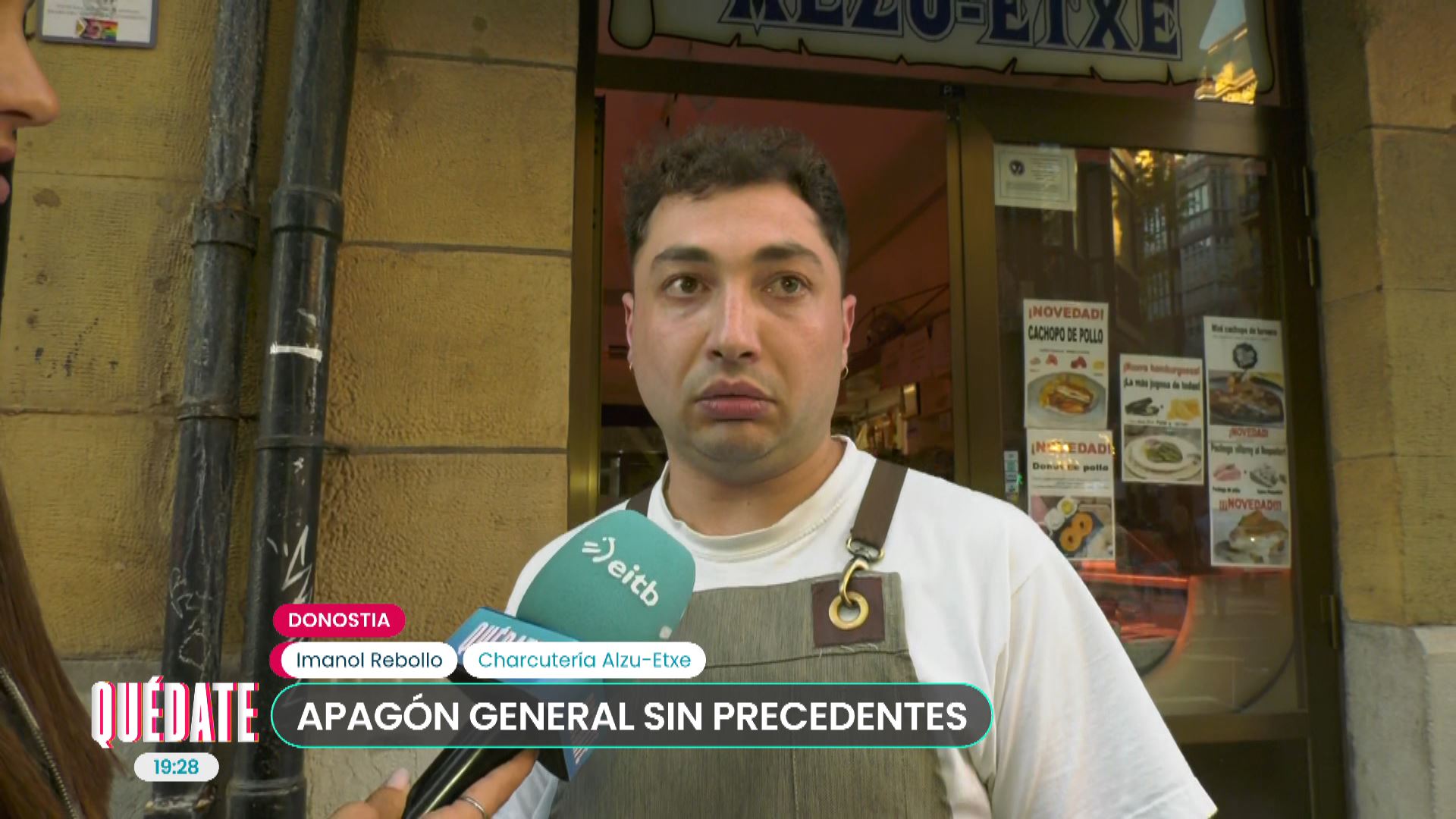 El apagón sufrido en España ha causado muchos problemas en los comercios. Imanol Rebollo, un charcutero de Donostia, nos ha contado que se han quedado sin máquinas y han tenido que vender los productos envasados que tenían.