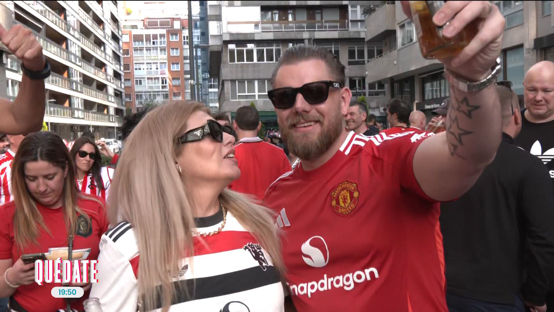 En buen ambiente ha reinado en Bilbao entre las aficiones del Manchester United y del Athletic de Bilbao. De hecho, los aficionados ingleses han preferido quedarse de poteo con los locales en vez de acudir a la kalejira prevista para ellos.