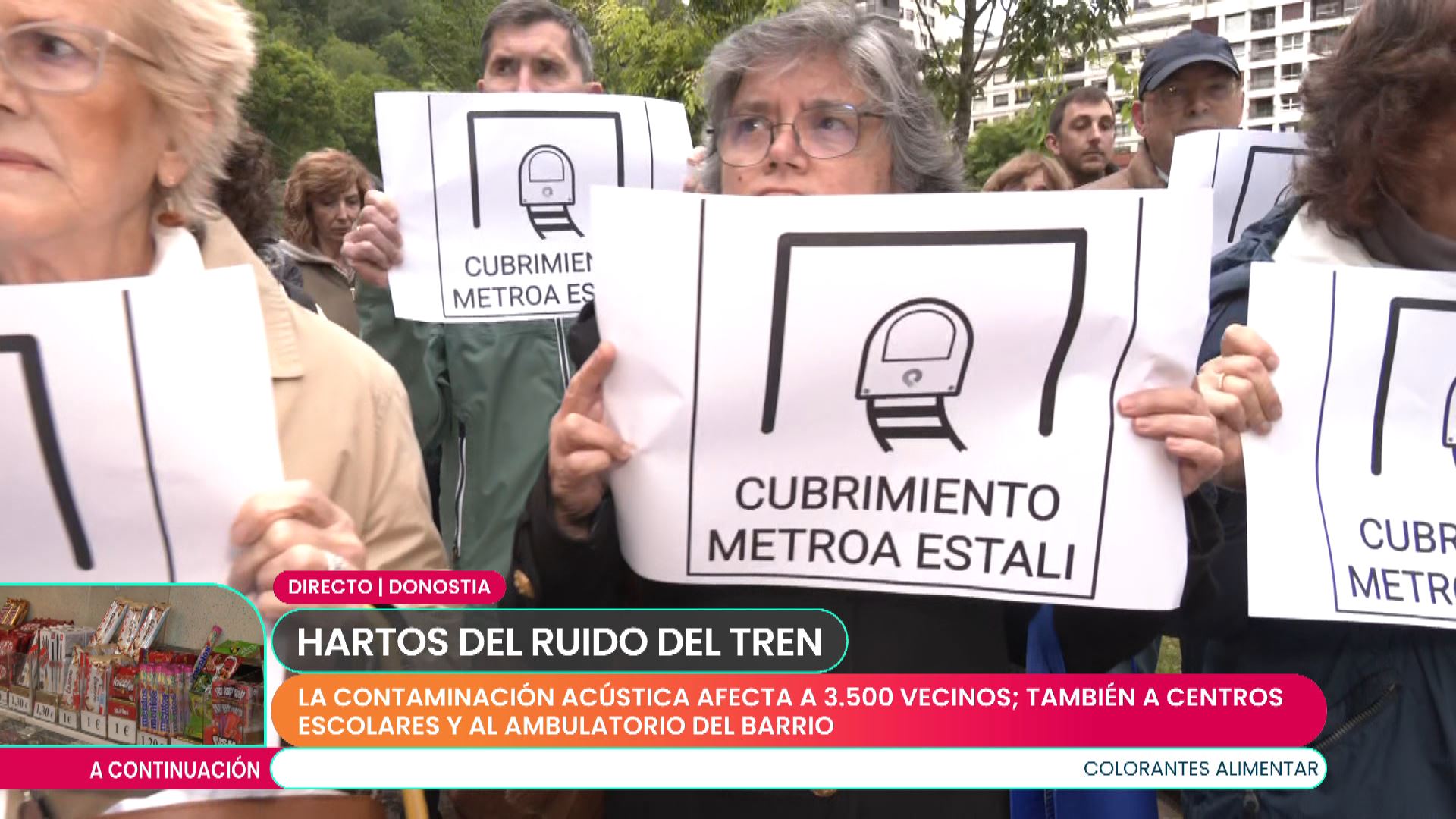 Los vecinos de Amara Berri denuncian el ruido que causa el Euskotren cuando pasa por el barrio. Se quejan de la contaminación acústica que causa el topo y ante esto piden que cubran las vías.