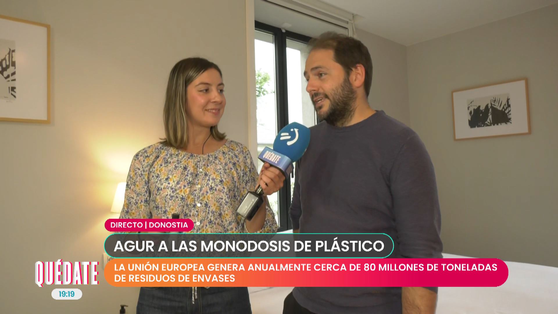 Los hoteles se despiden de los envases monodosis de plástico. En el hotel Bidaia de Donostia ya se están preparando para esta normativa y ahora utilizan formatos que se puedan ir rellenando con el paso del tiempo.