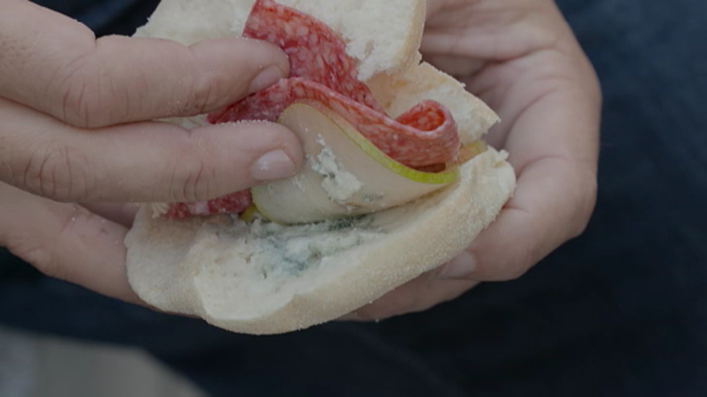 David de Jorge ha recibido varias guarrindongadas esta semanas a través de las redes sociales y entre todas se ha atrevido a probar a pie de calle un bocadillo de salami, queso azul y pera.
