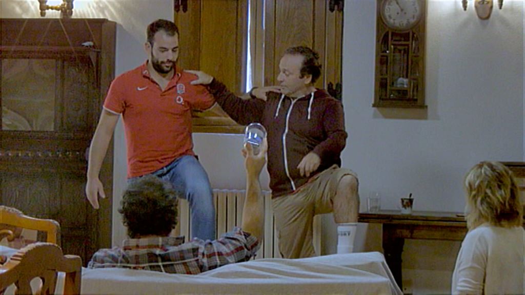 Jose, el cuñado de Julio, lo recibe saludándolo tras sacarse la mano de sus partes. Al enterarse de que Julio es de Valladolid, el novio de su suegra le hace bailar un aurresku, pero agarrado.