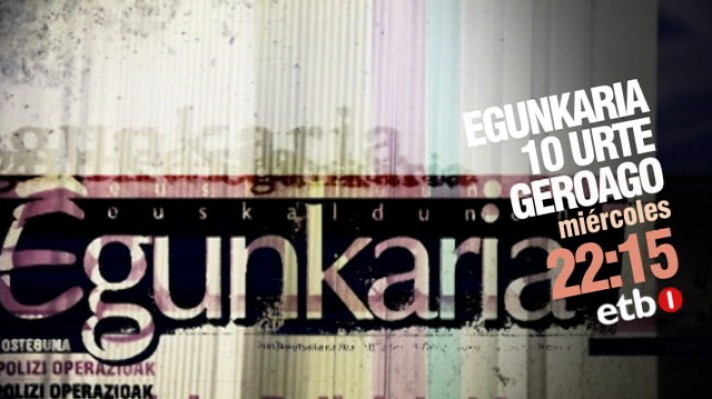 Con motivo del 10º aniversario del cierre de 'Euskaldunon Egunkaria', ETB-1 emite a las 22:15 un documental que cuenta la clausura del períodico en euskera.
