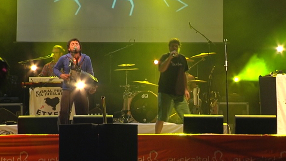 Los asistentes al concierto de Esne Beltza en la Plaza de los Fueros no dejaron de moverse con la mezcla de trikitixa, reggae, ska y hip-hop de este grupo de Hernani.