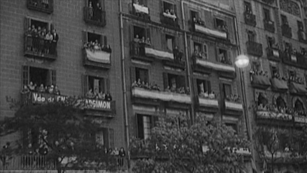 El primer viaje de Franco a San Sebastián tuvo lugar el 10 de julio de 1939. Todo el mundo agitaba las banderas al paso del general.