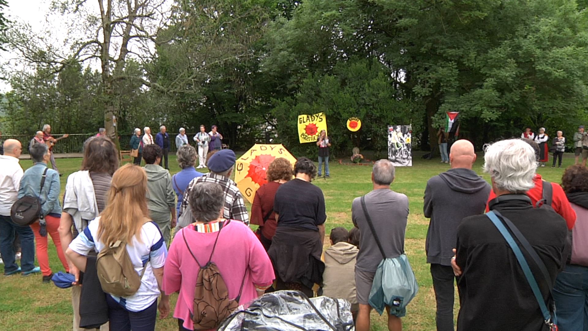 Eguzki mugimendu ekologistak eta Gladys Gogoan elkarteak omenaldia egin diote igande honetan Gladys del Estal gazte ekologistari, zentral nuklearren eta Bardeako tiro poligonoaren aurkako protesta batean, Tuteran (Nafarroa), Guardia Zibilak hil zuenetik 46 urte bete direnean.