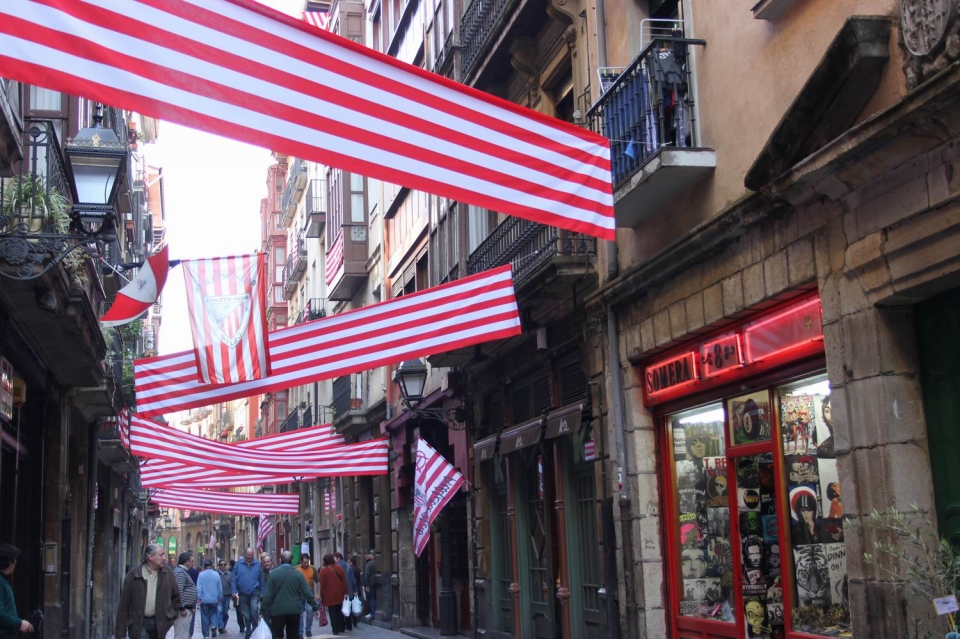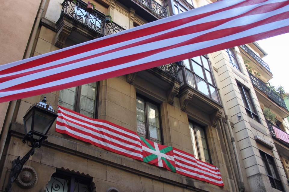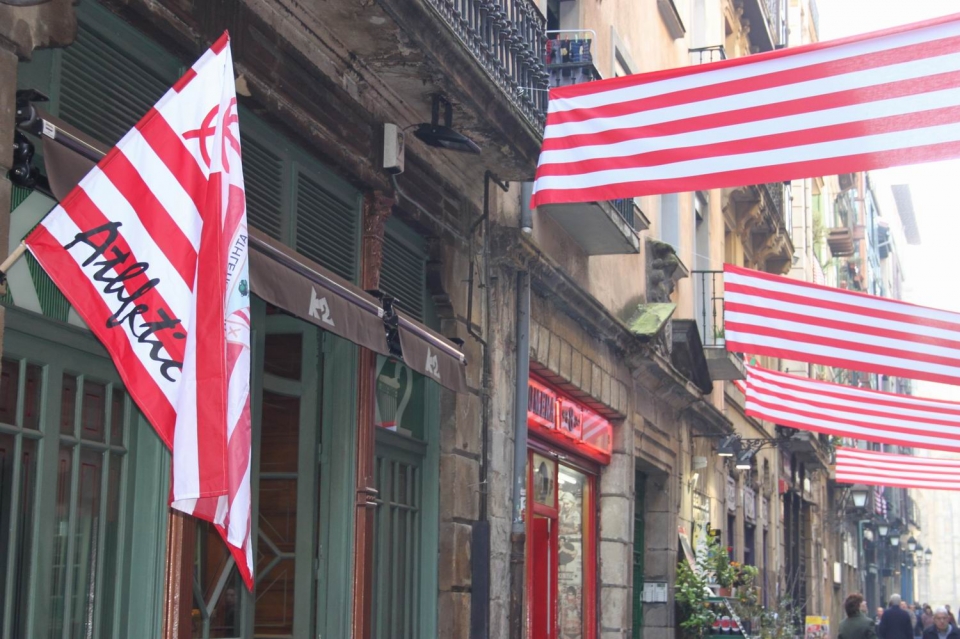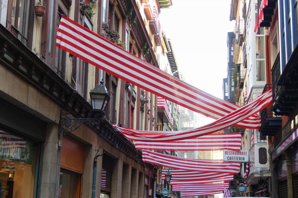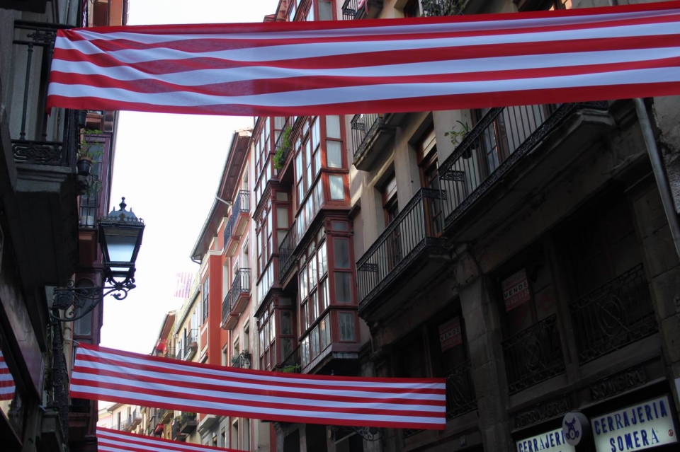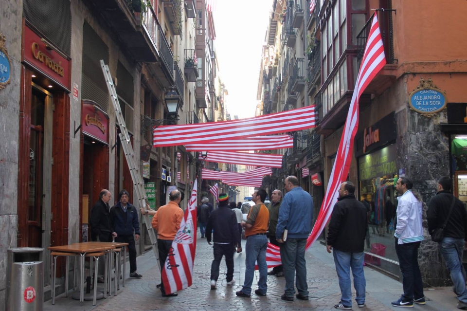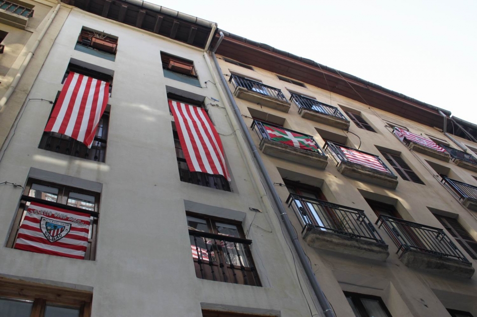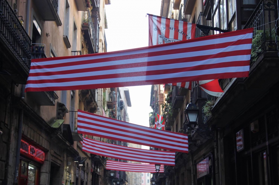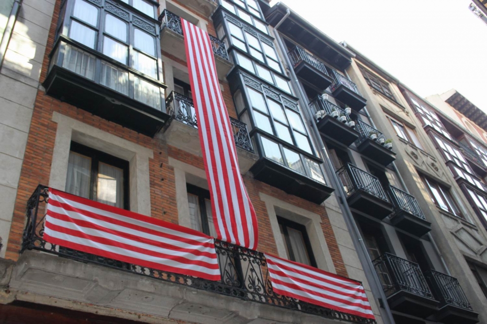 Bizkaiko hiriburua Athletic Cluben kolorez jantzi da. 'Sukar zuri-gorria'ren argazki gehiago, hemen.