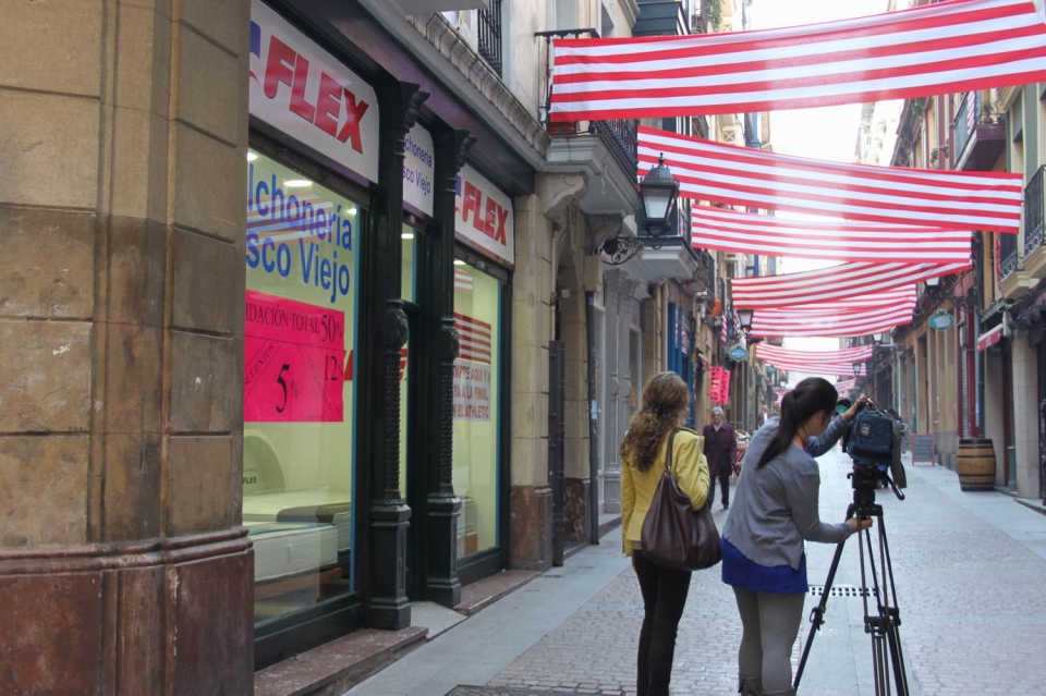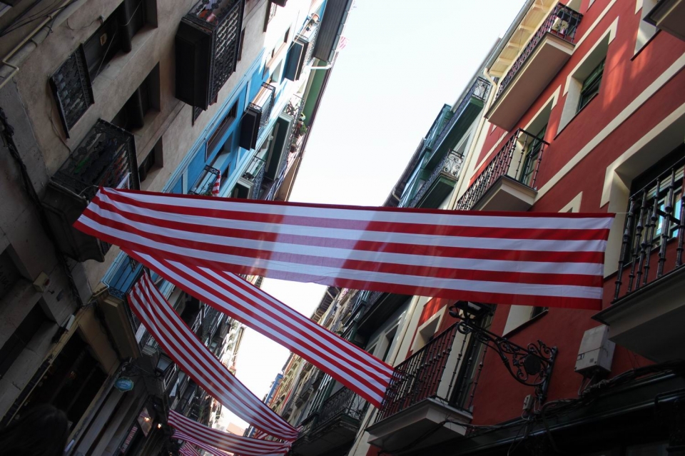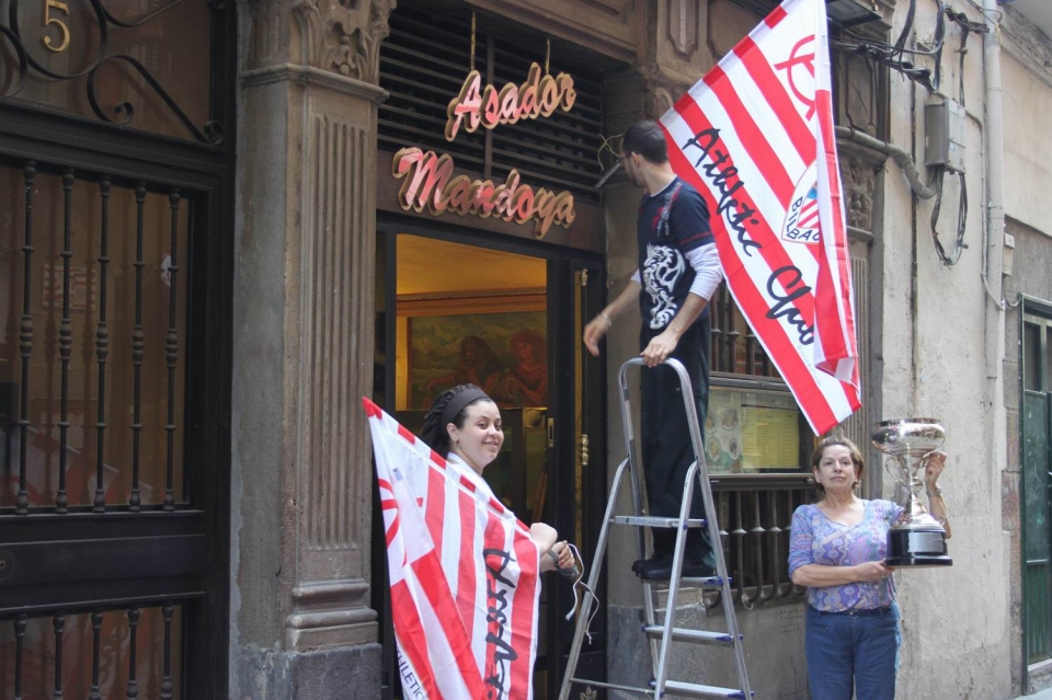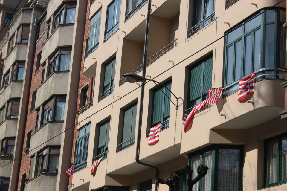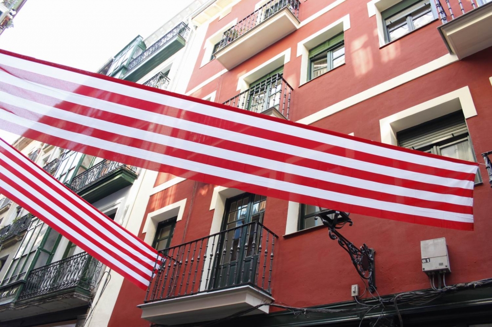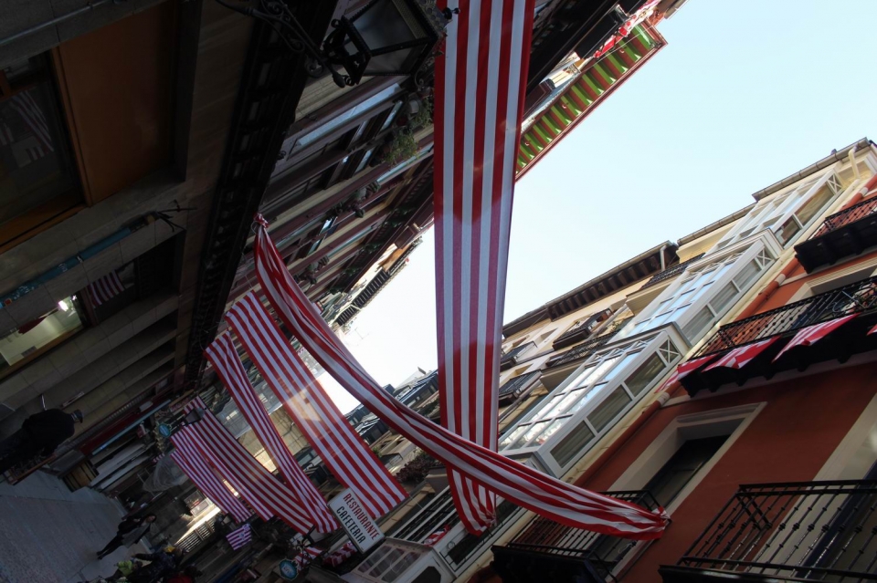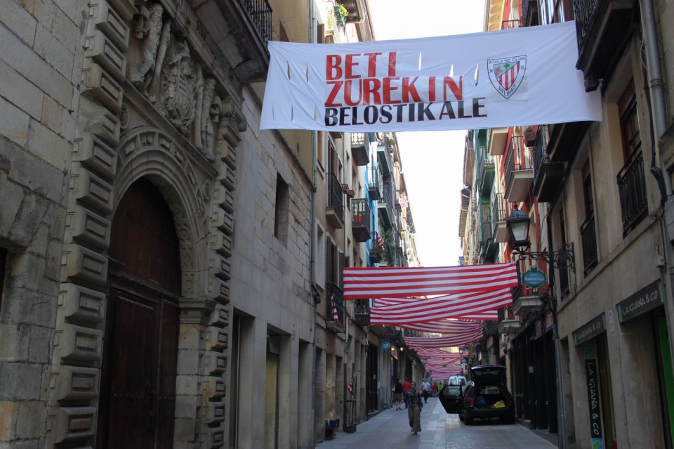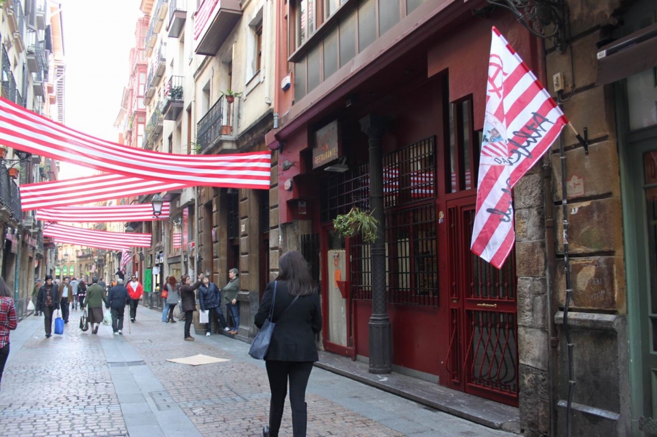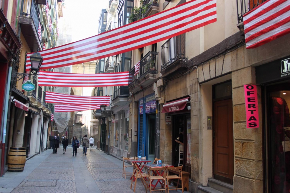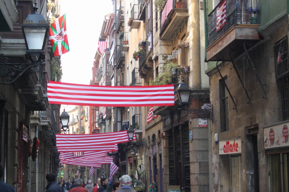 Bizkaiko hiriburua Athletic Cluben kolorez jantzi da. 'Sukar zuri-gorria'ren argazki gehiago, hemen.