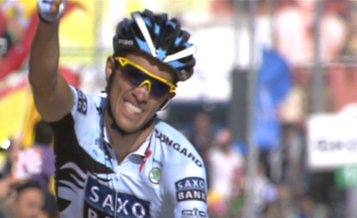 Txirrindulari madrildarrak Etnan bukatu den etapa irabazi eta 'maglia rosa' jantzi du.