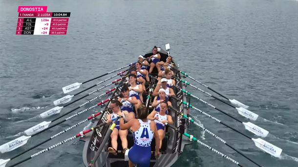 Juan Mari Etxabek entrenatzen duen traineruak erabateko nagusitasunez irabazi du lehen txanda, 10 minutu eta 29 segundoko marka eginda. Tolosaldea izan da bigarren, 10 segundora; Donostiarra hirugarren, 24ra, eta Astillero laugarren, 25era.