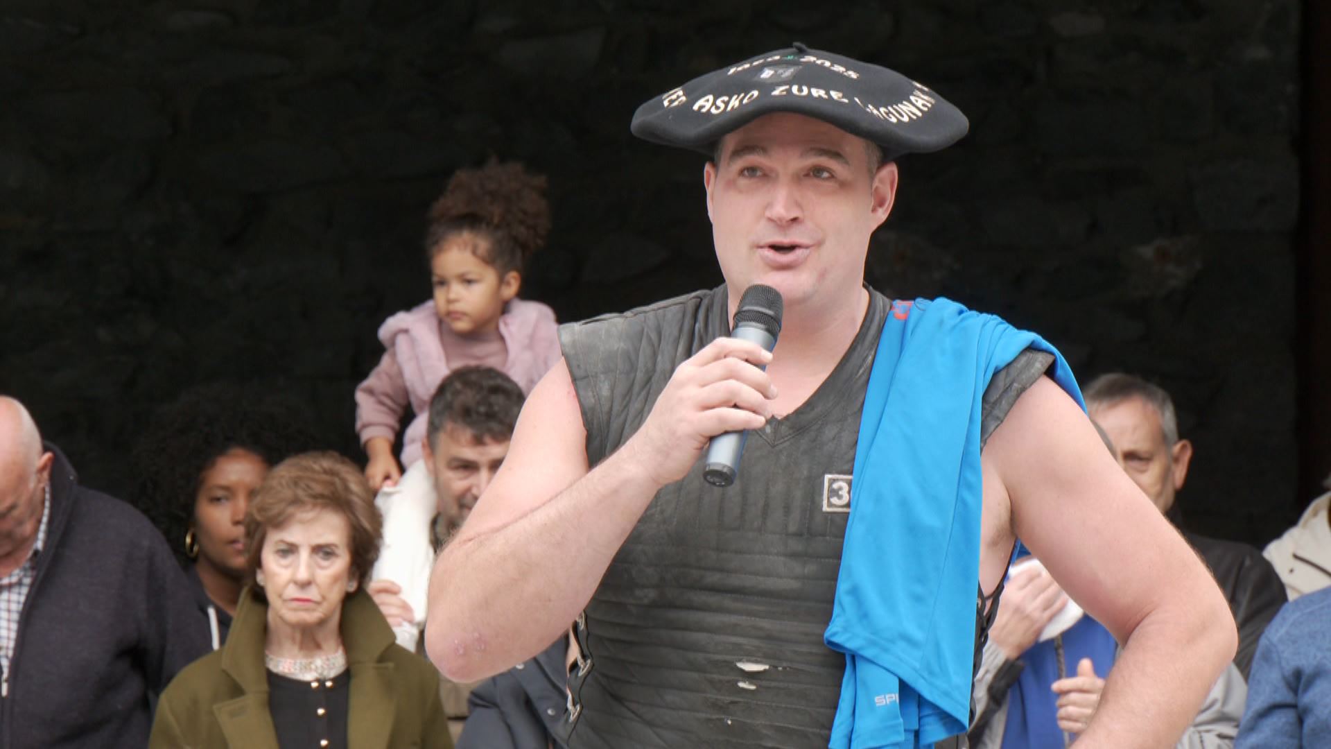 Etxebeste, nekatuta baina pozik 100 kiloko harri zilindrikoarekin...