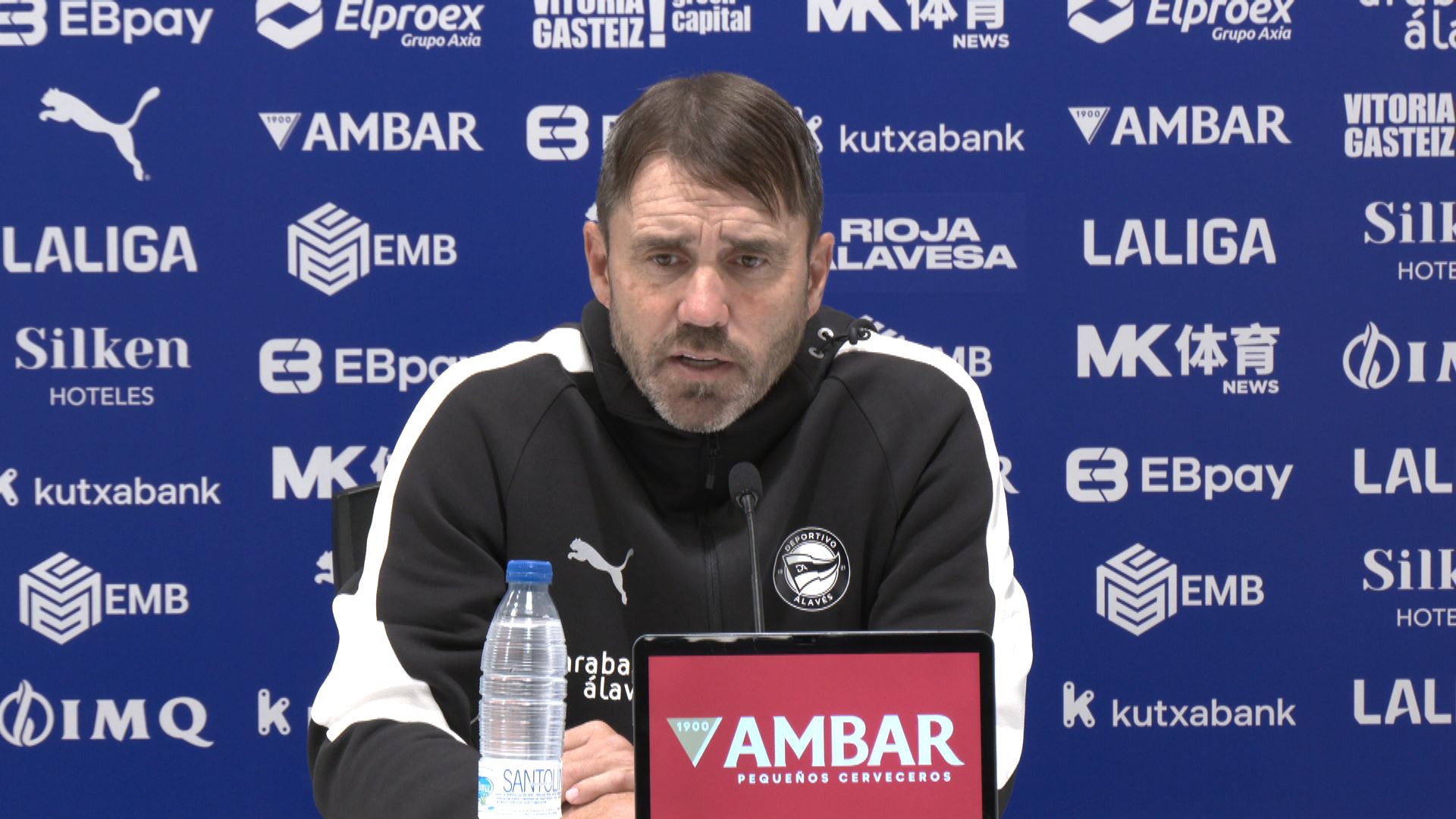 Alaveseko entrenatzaileak igande honetan EA Sports Ligako 10. jardunaldian Rayo Vallecanoren aurka jokatuko duten partidaz hitz egin du.