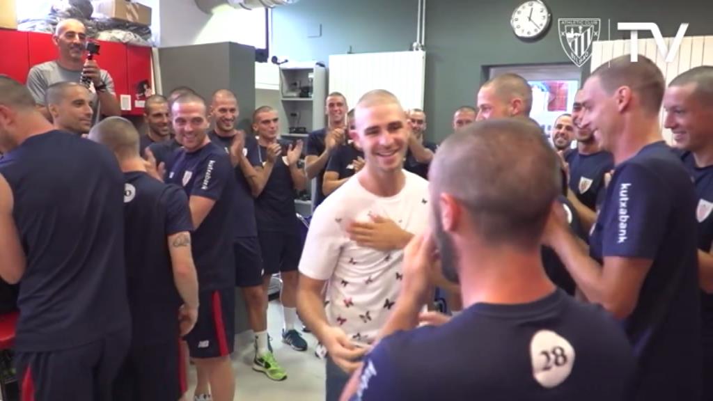 Athleticeko jokalariek ilea moztu dute Yerayri elkartasuna agertzeko. Ezustekoa eman diote Lezaman, entrenamenduaren ostean.