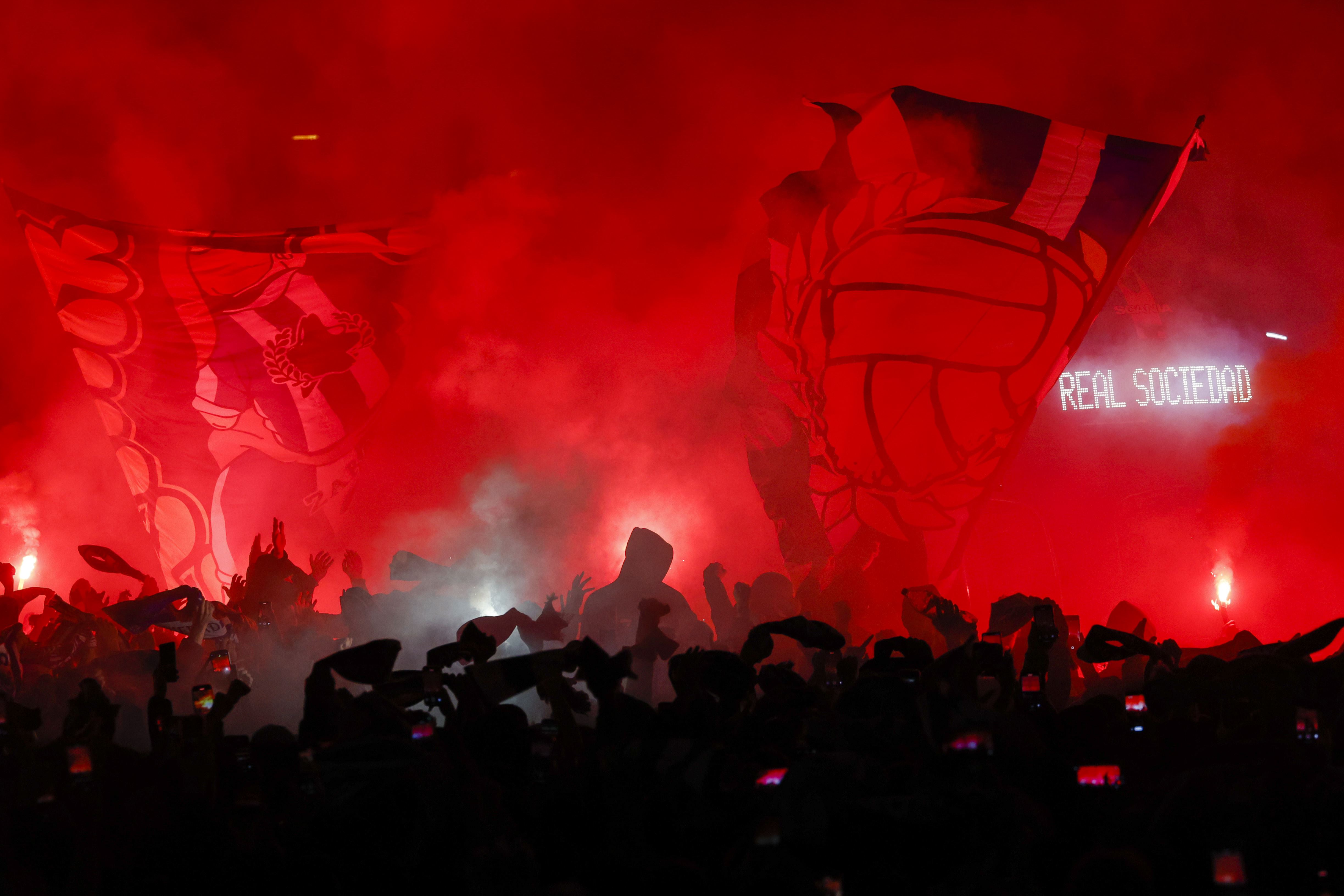 Realak eta Real Madrilek Errege Kopako finalerdietako joaneko partida jokatuko dute, Reale Arenan. Txuri-urdinen zaleek harrera ikusgarria egin diote taldeari, animatzeko.