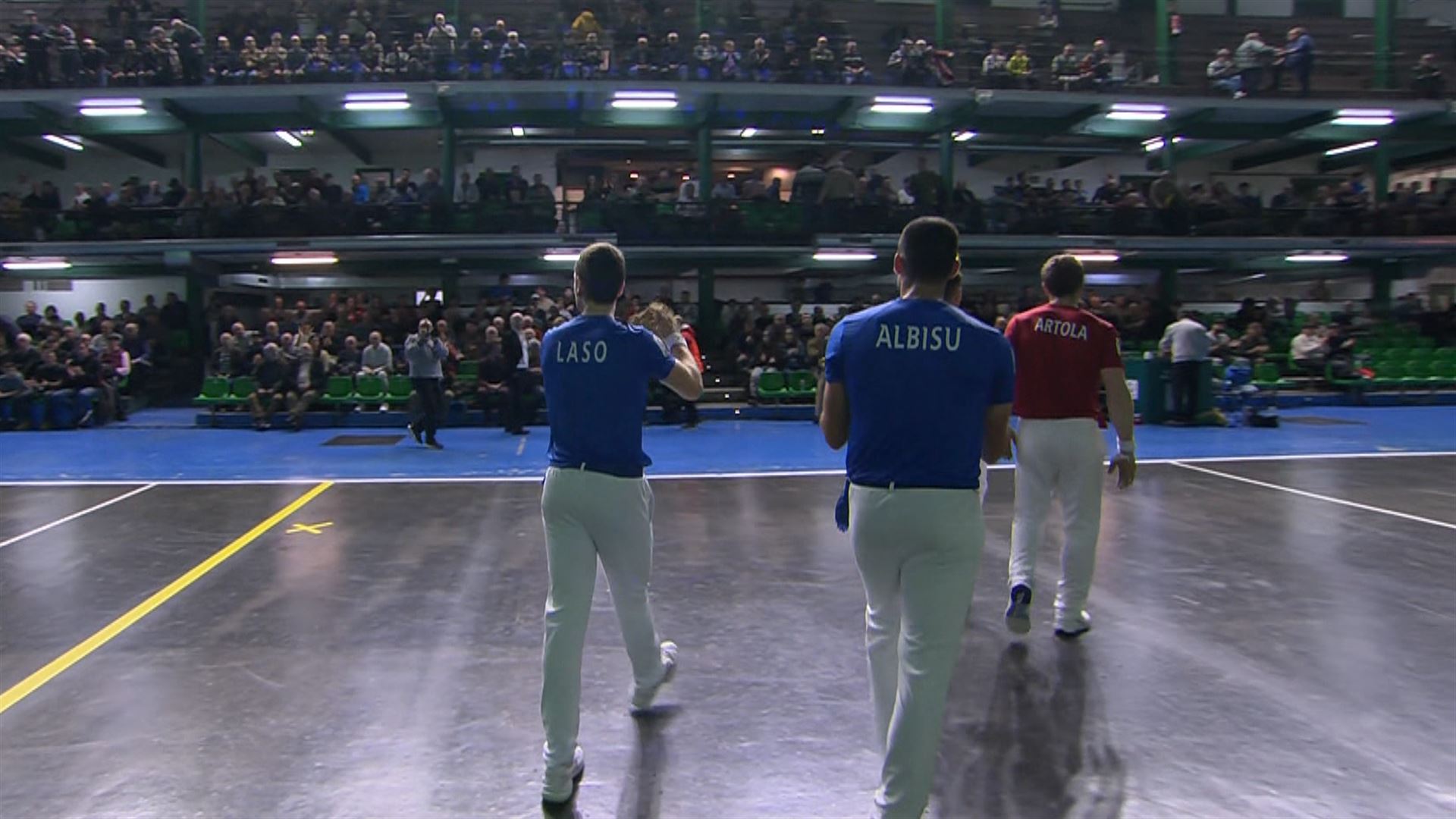 Tolosako Beotibar pilotalekuan jokatutako partidaren lehen erdia oso parekatua izan da, baina bigarrenean Unai Lasok eta Jon Ander Albisuk Iñaki Artola eta Ander Imaz aise menderatu dituzte.