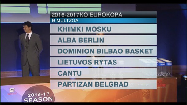 B MULTZOA: Khimki Moscow Region (RUS), Alba Berlin (ALE), Dominion Bilbao Basket (EUS), Lietuvos Rytas Vilnius (LET), Foxtown Cantú (ITA) eta Partizan Nis Belgrade (SRB).