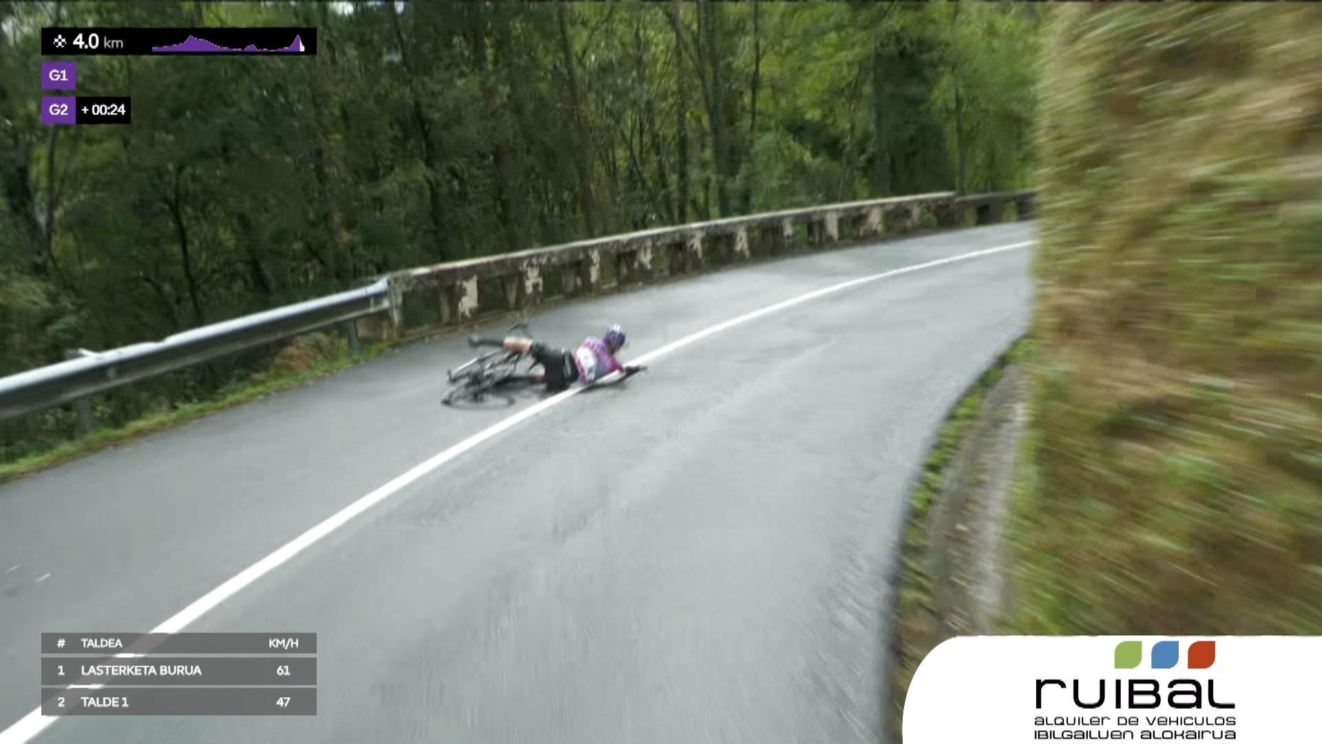 Zarauztarra lasterketa buruan zihoan helmugarako lau kilometrora erorikoa izan duenean. Gainera, katea atera egin zaio eta minutu preziatuak galdu ditu lastreketara itzuli aurretik.